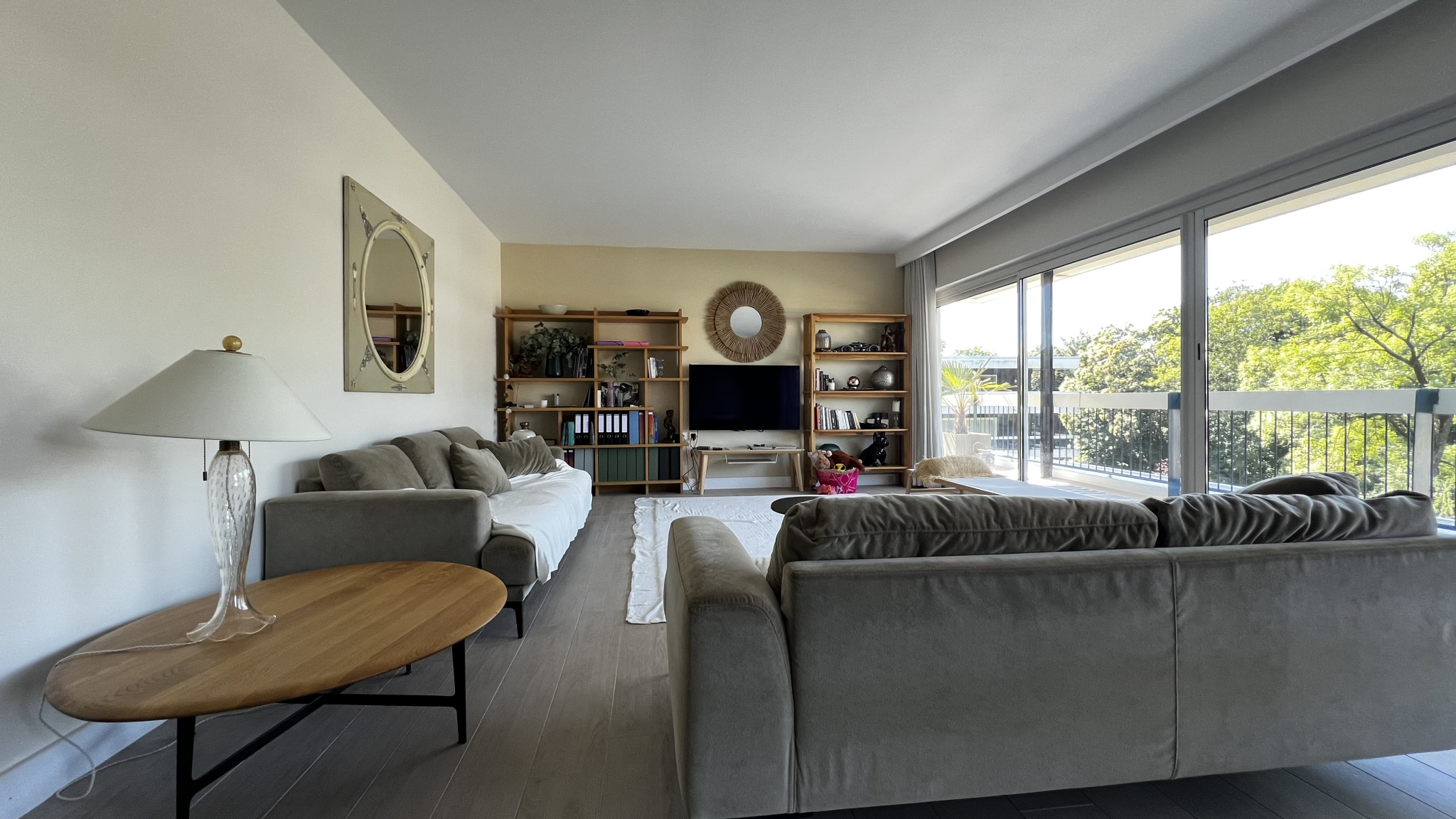 Idéalement situé à proximité du centre ville, des écoles et des bus, bel appartement de 3/4 pièces entièrement refait, composé d'une entrée, d'un séjour double prolongé par une loggia ouverte offrant une belle vue très dégagée, une cuisine équipée partiellement ouverte sur le séjour, de deux chambres, une salle de douche, un dressing-room, des rangements et des wc séparés. une cave et une place de parking extérieure complètent ce bien.