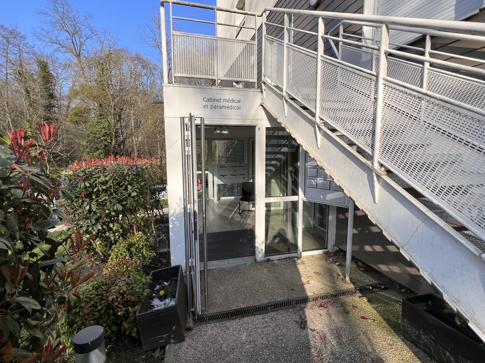 Au 21 Rue du Gord à Boussy Saint Antoine, un cabinet de 33,89m² avec également à partager avec les autres cabinets voisins : réception et secrétariat, salle d'attente, toilettes, couloir, local déchets médicaux.