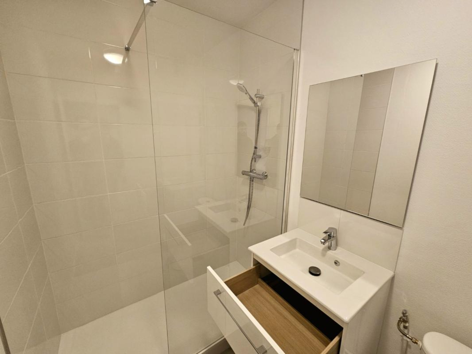 Il est composé d'un couloir d'entrée, une pièce de vie, une cuisine séparée aménagée, une salle de douche moderne avec W-C.