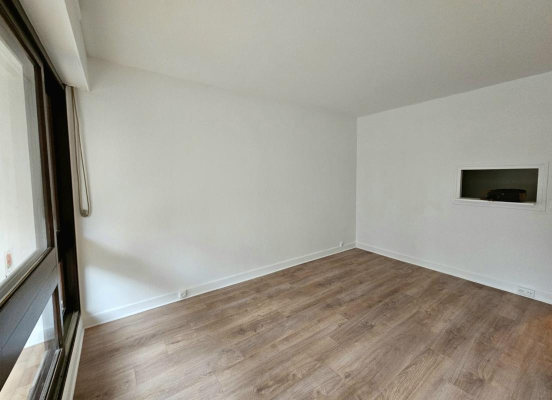Un grand studio rénové, en rez-de-jardin et avec loggia vitrée.