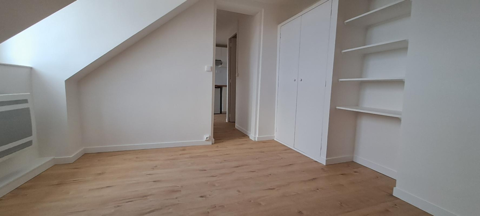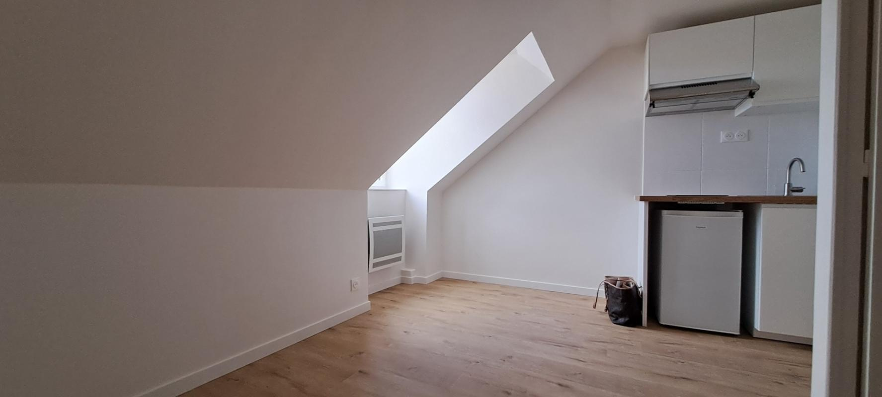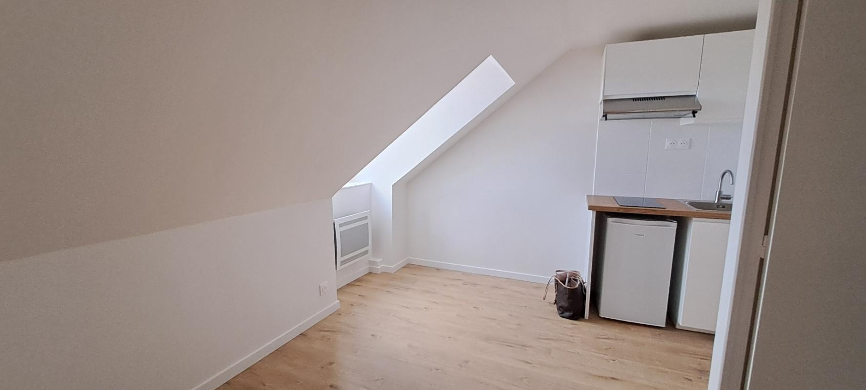 Très bel appartement mansardé au 4ème sans ascenseur, entièrement refait, comprenant une grande cuisine déjeunatoire, une chambre avec rangements, une salle de douche avec wc.