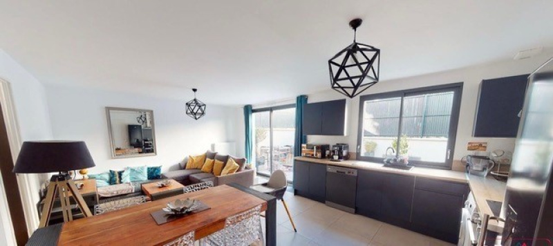 L'ensemble est implanté sur un terrain clos d'environ 150 m², avec une terrasse et un jardin propices aux moments de détente. Côté prestations, vous apprécierez les volets roulants électriques, la pompe à chaleur assurant un excellent classement énergétique en DPE A, ainsi qu'un garage attenant équipé d'une porte sectionnelle motorisée avec accès direct au jardin.