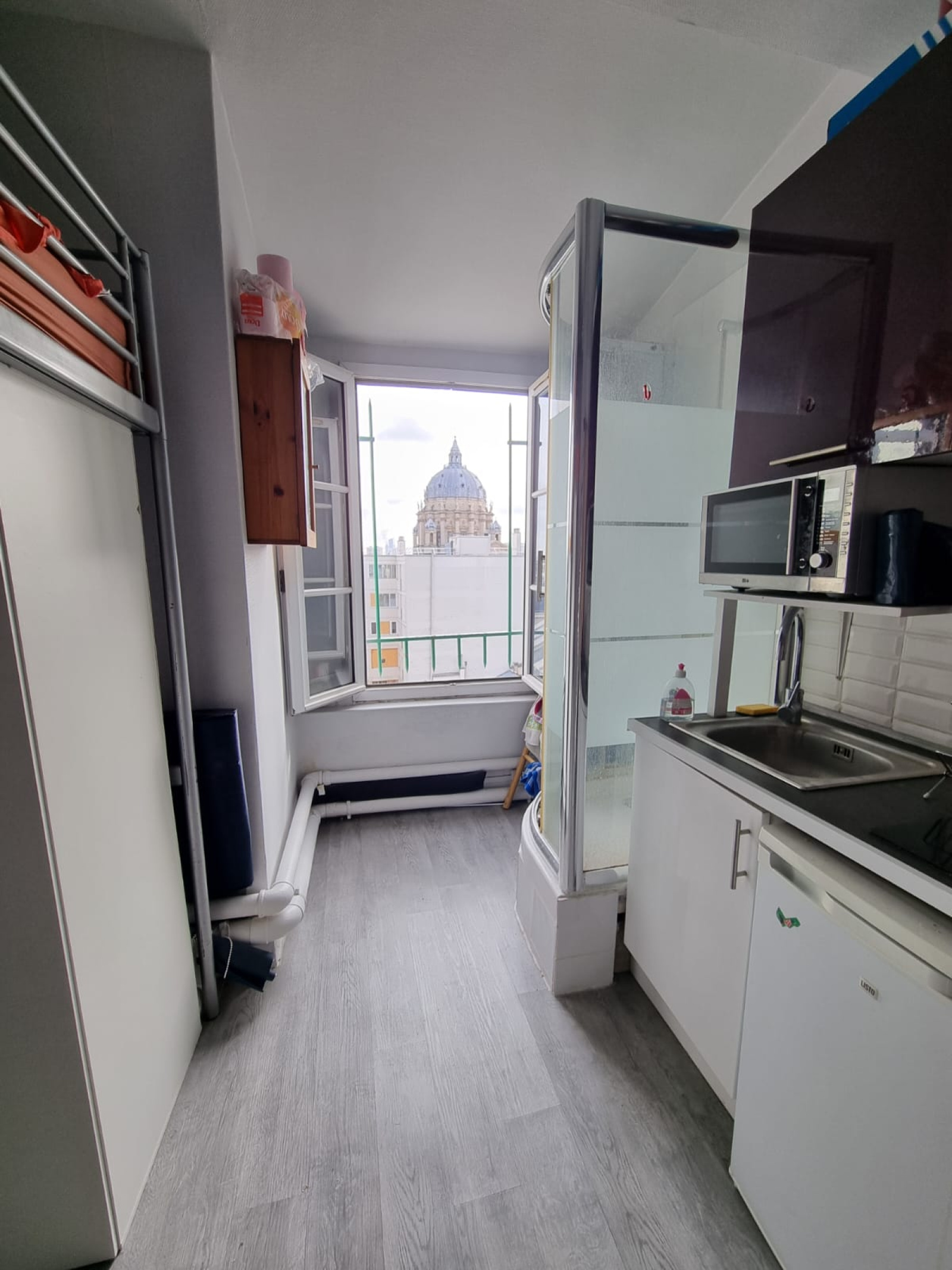 En plein Cœur du 5ème arrondissement, proche du RER B, Port Royal, des grandes Universités, des commerces et des transports, au dernier étage d'un immeuble sécurisé avec gardien, vous trouverez cette charmante studette de 8,10 m² "loi Carrez", bien optimisée sans perte de place. Composée d'une pièce principale avec une grande fenêtre, bénéficiant d'une vue dégagée sur le Val de Grâce, un coin cuisine aménagée, un couchage en mezzanine, une douche et un lavabo. En bon état général, elle sera idéal pour un pied-à-terre parisien ou loger un étudiant. Logement à consommation énergétique excessive classé "G". Montant estimé des dépenses annuelles d'énergie pour un usage standard compris entre 470 € et 670 € par an. Année de référence Tarif de l'énergie pour cette estimation 2021. Les informations sur les risques auxquels est exposé ce bien sont disponibles sur le site Géorisques. https://www.georisques.gouv.fr REF 223498