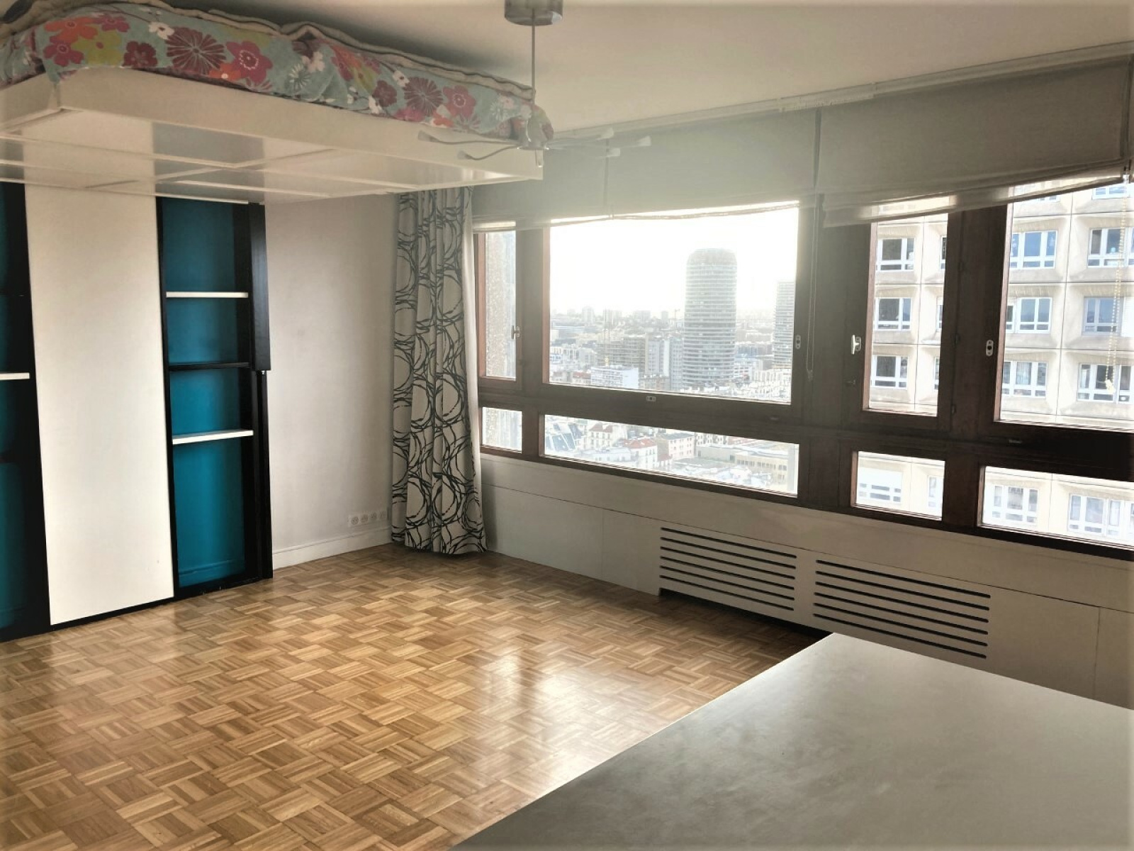 PARIS 75013 - Tour Sapporo. Un studio au calme de 34,13m² en étage élevé avec ascenseur, en très bon état. Il est composé d'une entrée avec rangements, d'une grande pièce de vie lumineuse avec une très belle vue sur Paris et ses monuments, d'une cuisine équipée, d'une salle d'eau avec water-closet. Une cave et un parking en sous-sol. Proche métro ligne 14 et de tous commerces.