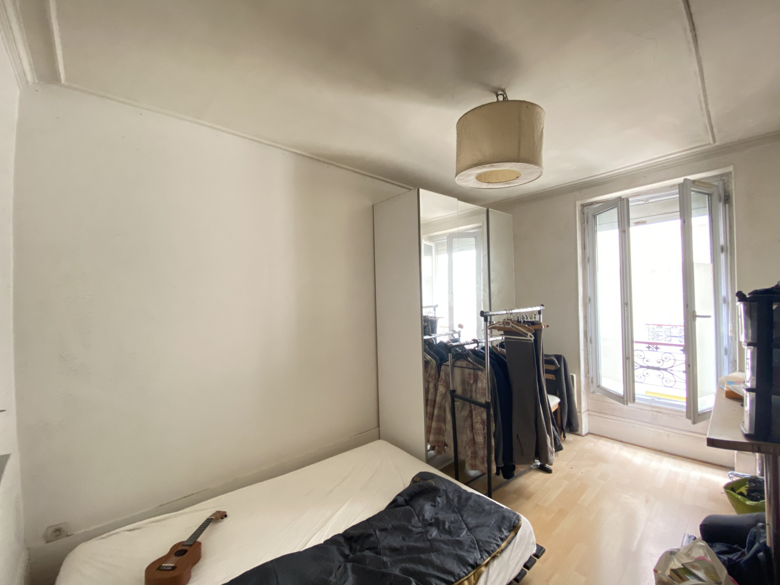 PARIS 13ème arrondissement, Gobelins: Un appartement de deux pièces de 28m², traversant, composé d'un séjour et d'une chambre au calme, d'une cuisine séparée équipée, et d'une salle d'eau avec wc. Au pied du métro Campo Formio Ligne 7 et de tous les commerces. Beau potentiel, travaux à prévoir.