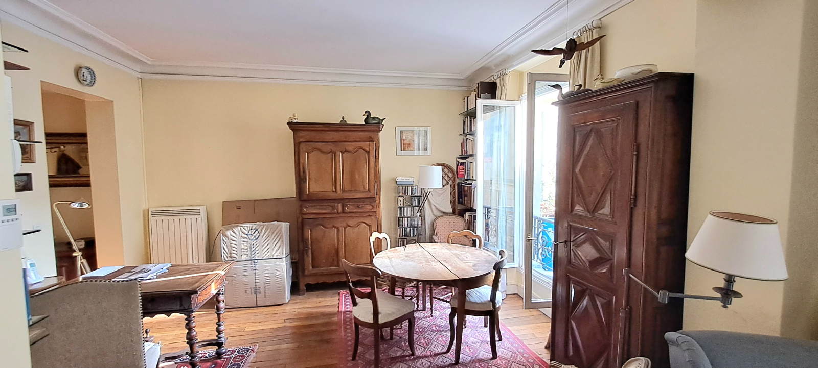 Quartier du Val de Grâce, dans une rue très calme, la rue Flatters, au 2ème étage, avec ascenseur d'un immeuble ancien, se trouve ce charmant trois pièces traversant.Très lumineux, orienté Sud/Ouest, vue dégagée sans vis-vis. D'une superficie de 56.61 m² en surface Carrez et 57.17 m² en surface au sol, en bon état général, vous y retrouverez tout le charme de l'ancien grâce à son parquet d'époque, sa grande hauteur sous plafond et ses belles moulures. Composé d'un vaste salon, d'une salle à manger, d'une cuisine séparée, d'une chambre confortable sur cour et d'une salle d'eau avec water-closet. Bien optimisé, sans perte de place, une cave en sous-sol. Montant estimé des dépenses d'énergie pour un usage standard compris entre 1140€ et 1580€ /an. Année de référence Tarif de l'énergie pris en compte au 01.01.2021. Les informations sur les risques auxquels ce bien est exposé sont disponibles sur le site Géorisques https:www.georisques.gouv.fr REF 222169