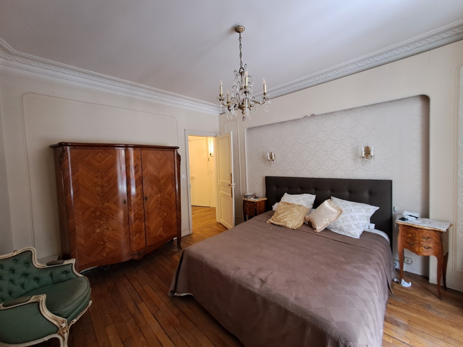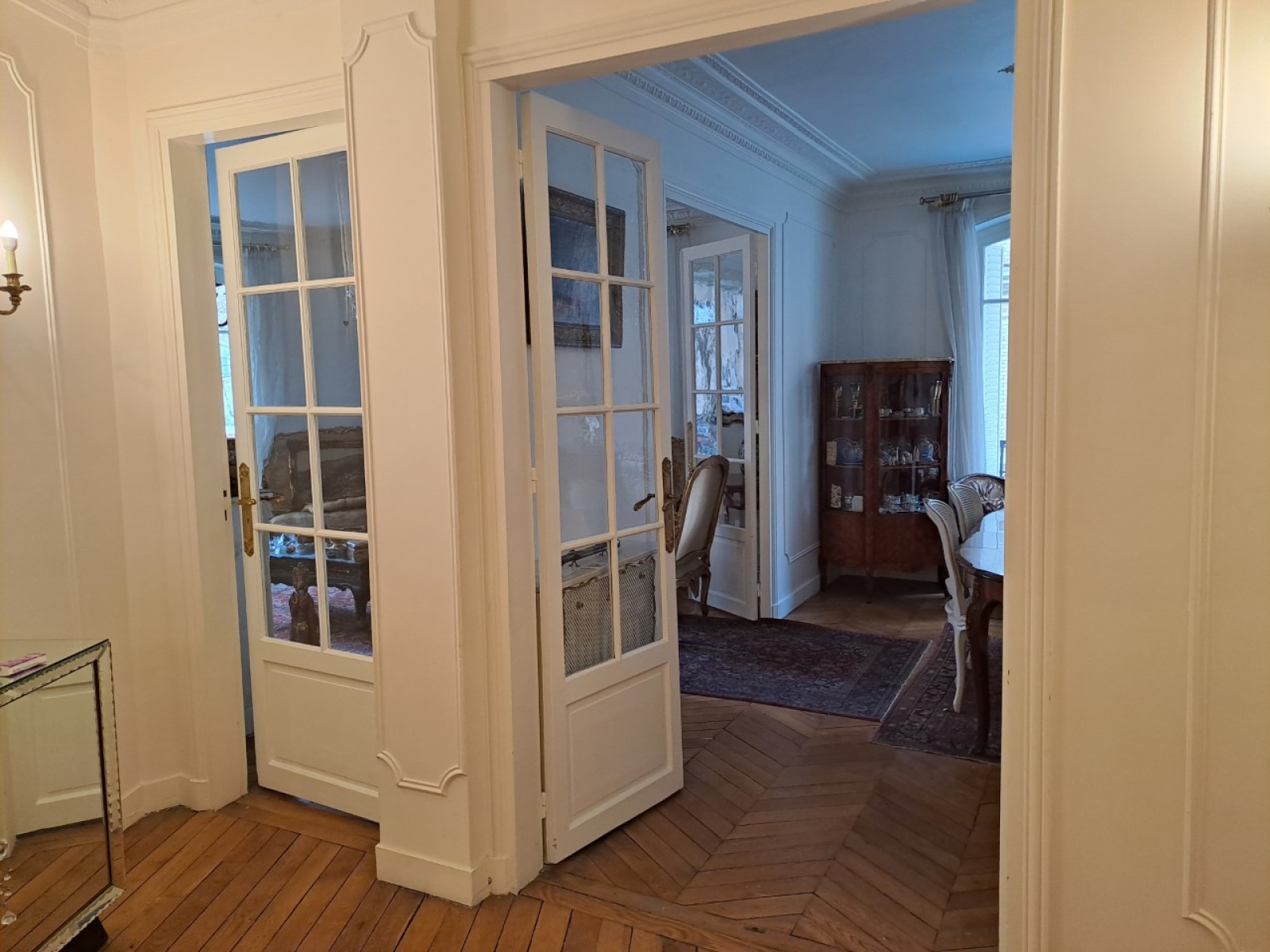 Cette appartement offre le charme et le standing typique de l'ancien parisien, parquet massif, moulures et cheminées dans chaque pièce, très beaux volumes pour les chambres 14 et 17m² cette dernière ayant une salle d'eau attenante, doubles vitrages récents, cuisine dinatoire avec porte de service.