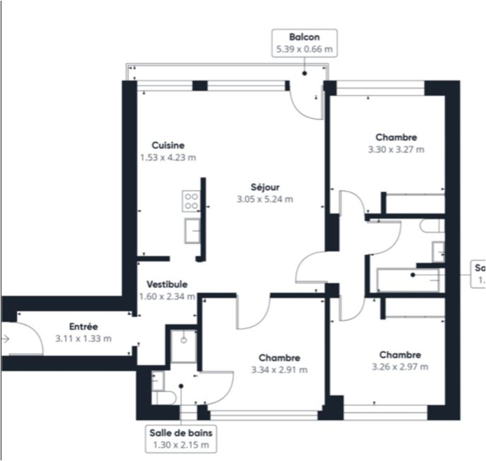 Appartement 4 pièces, 3 chambres, balcon Paris (75013)