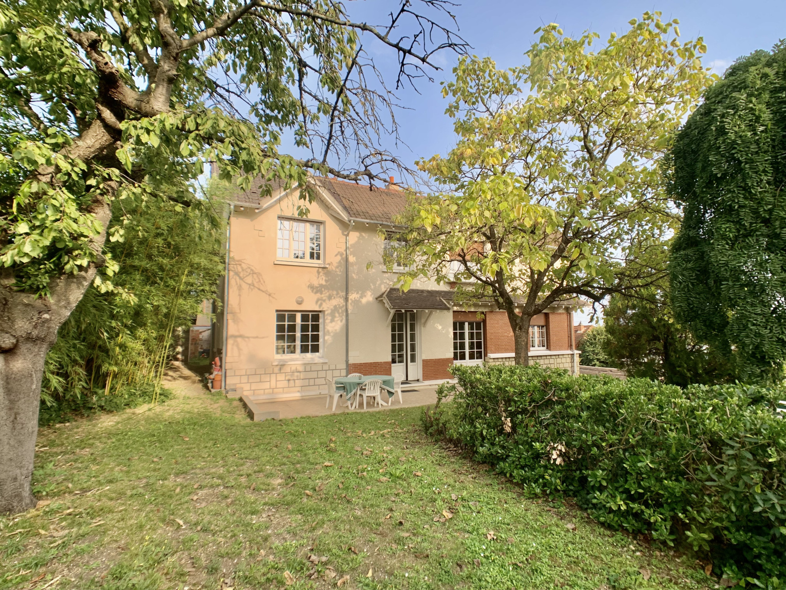 Quartier Fin d'Oise, à quelques minutes à pieds du RER, installez-vous dans cette maison de famille pleine de charme sur un terrain arboré de 753 m2.
