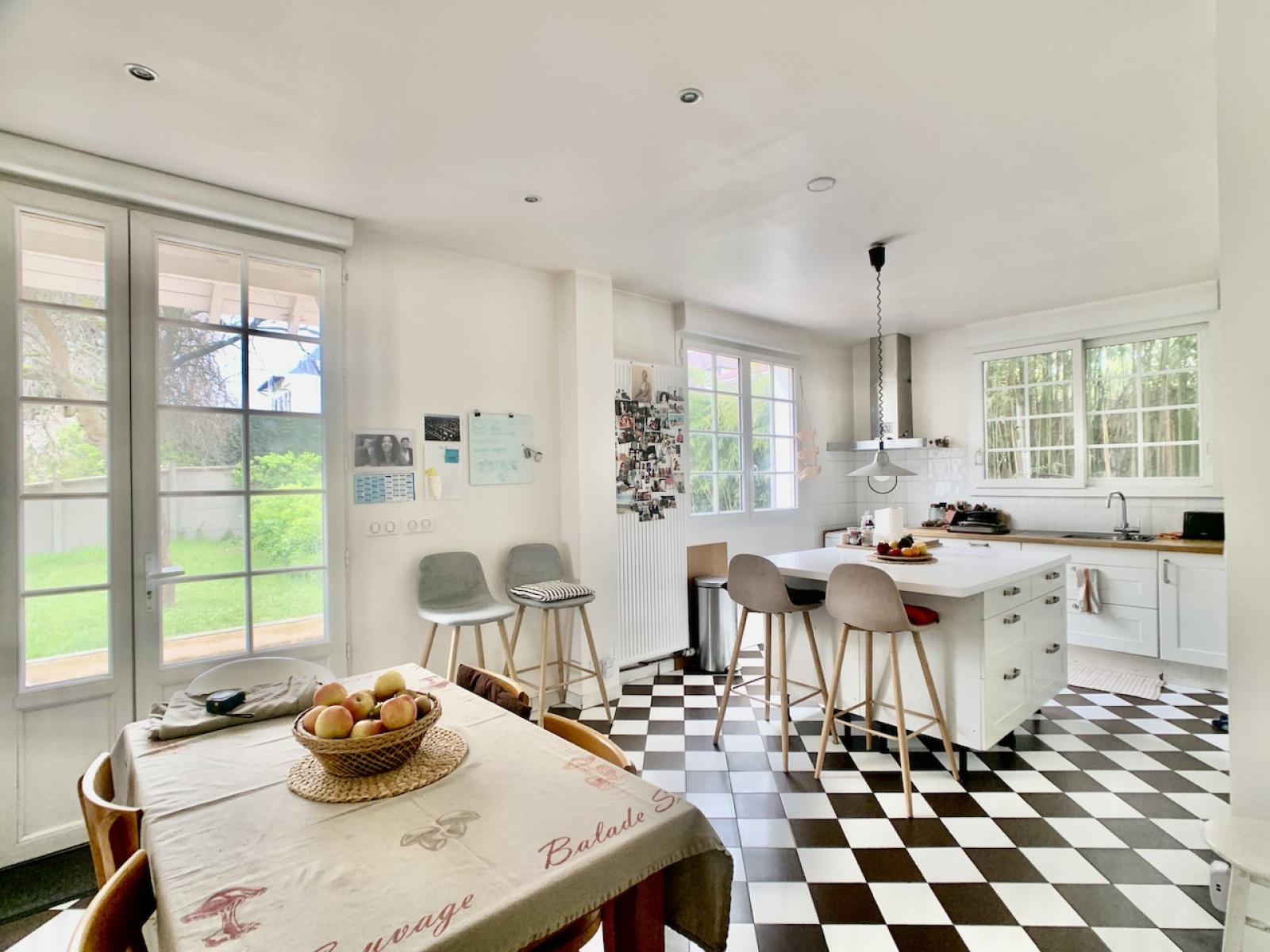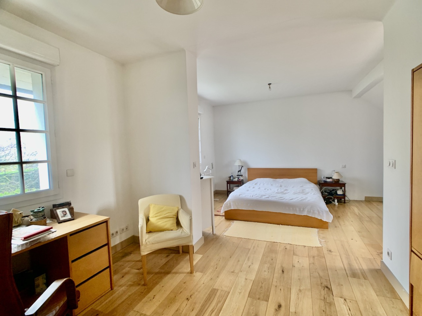 Déployée sur 200 m2 habitables, une vaste entrée dessert le séjour avec cheminée et, dans son prolongement, une grande cuisine dinatoire de 22 m2 d'ou l'on peut directement profiter de la terrasse et du jardin. Toujours au rdc une première chambre, aujourdhui salon TV, une salle de bains, une seconde chambre et un bureau. Au 1er étage, un palier ouvre sur une chambre de 25 m2 et sa terrasse, puis encore 3 belles chambres, une salle de bains et un dressing.
