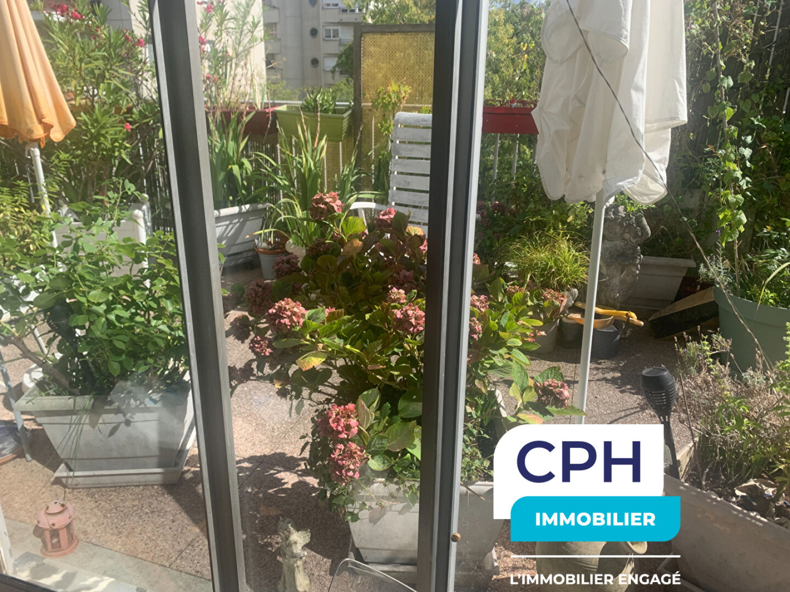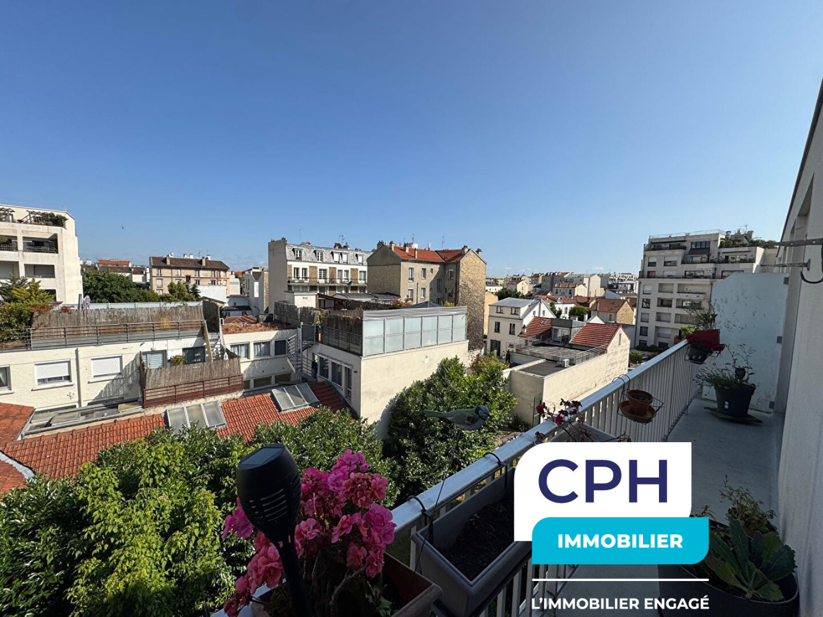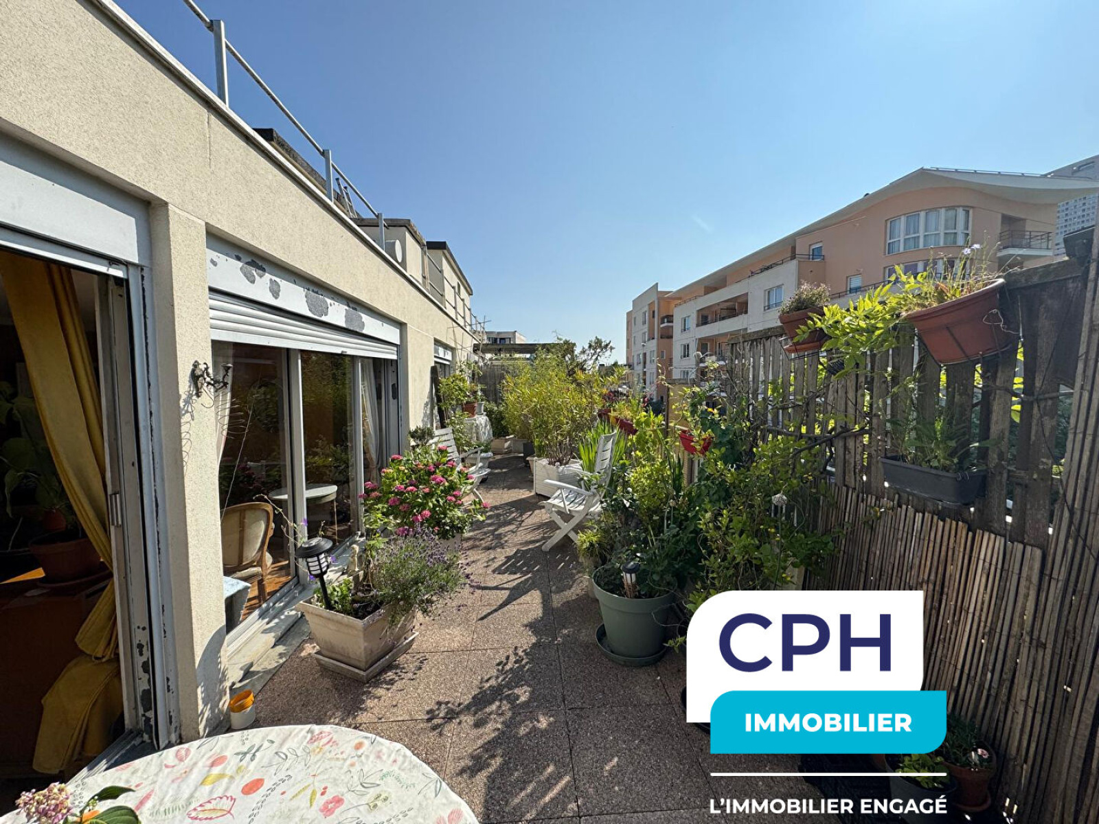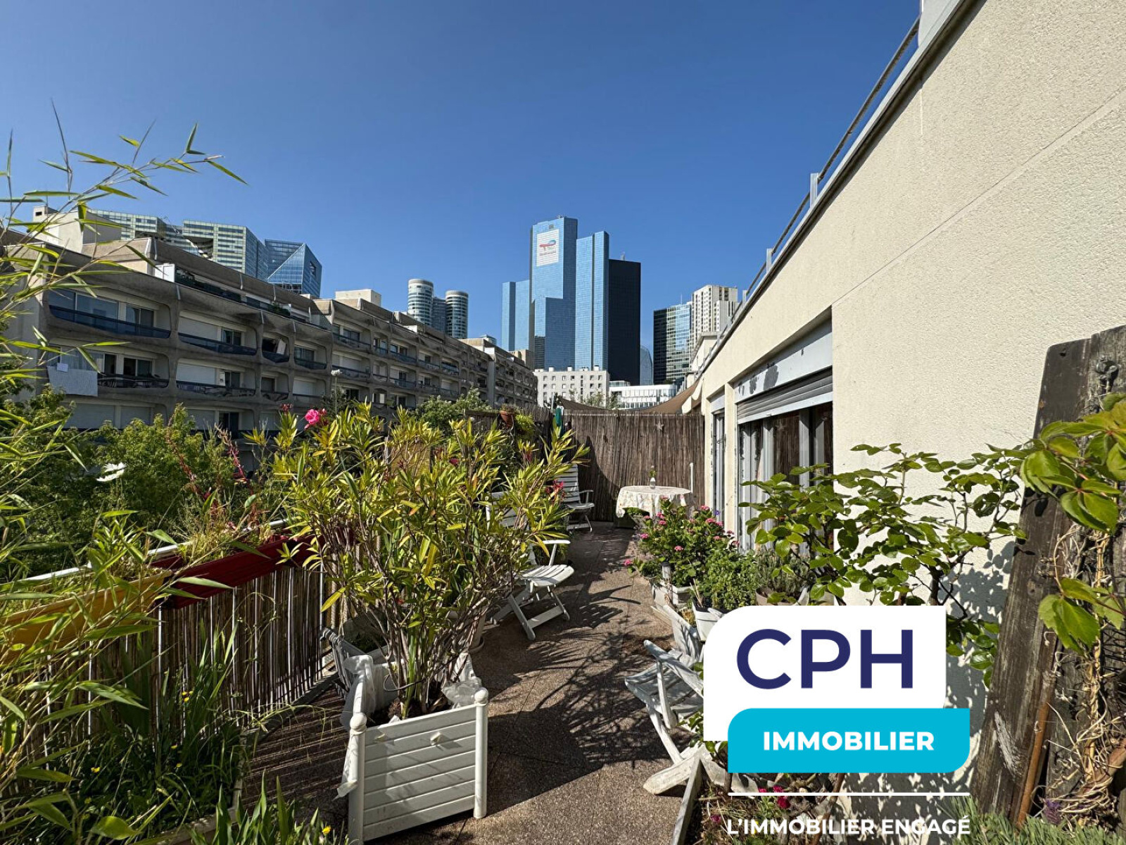Terrasse de 34 m² et balcon de 6 m² avec vue sur La Défense.