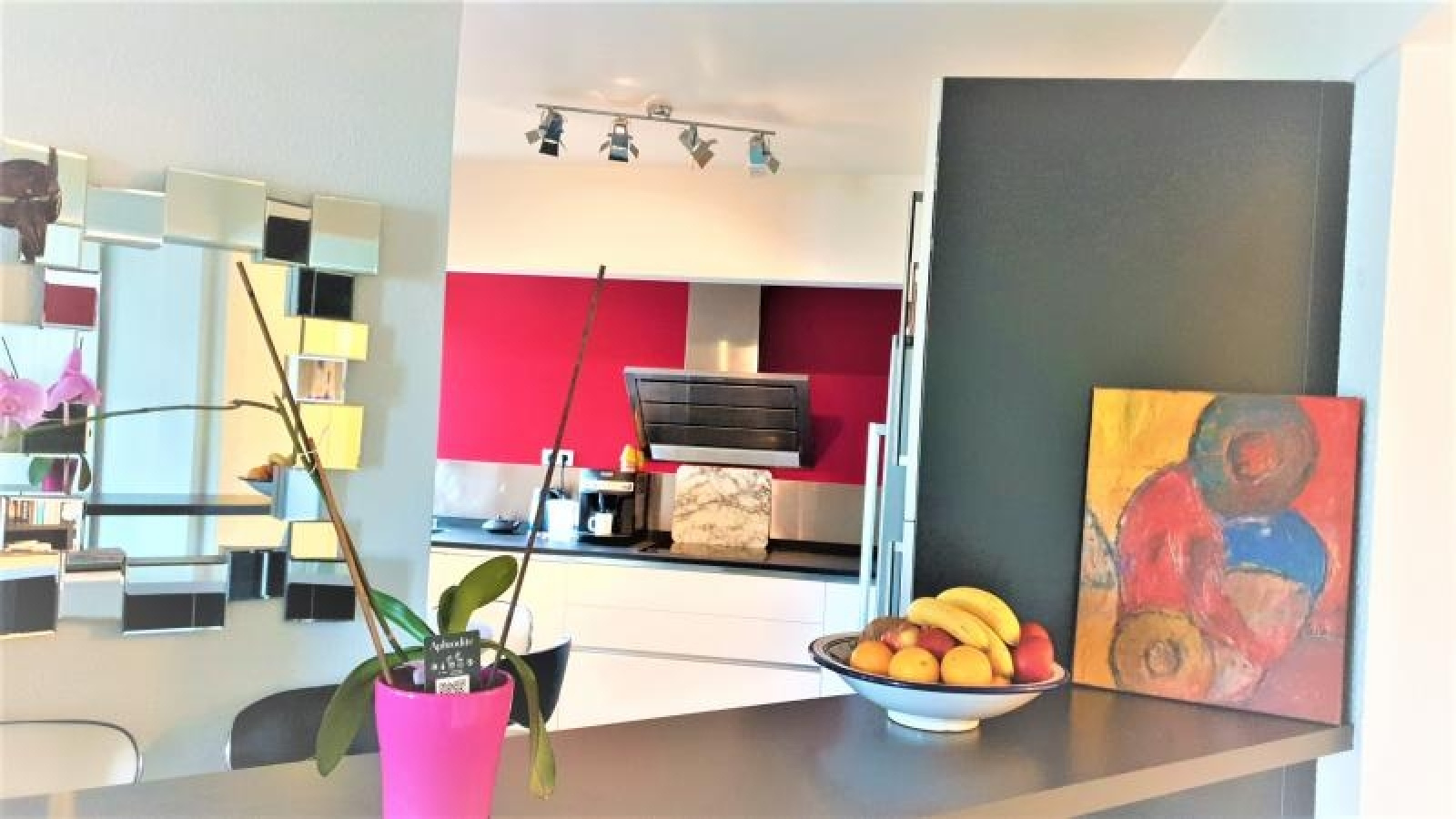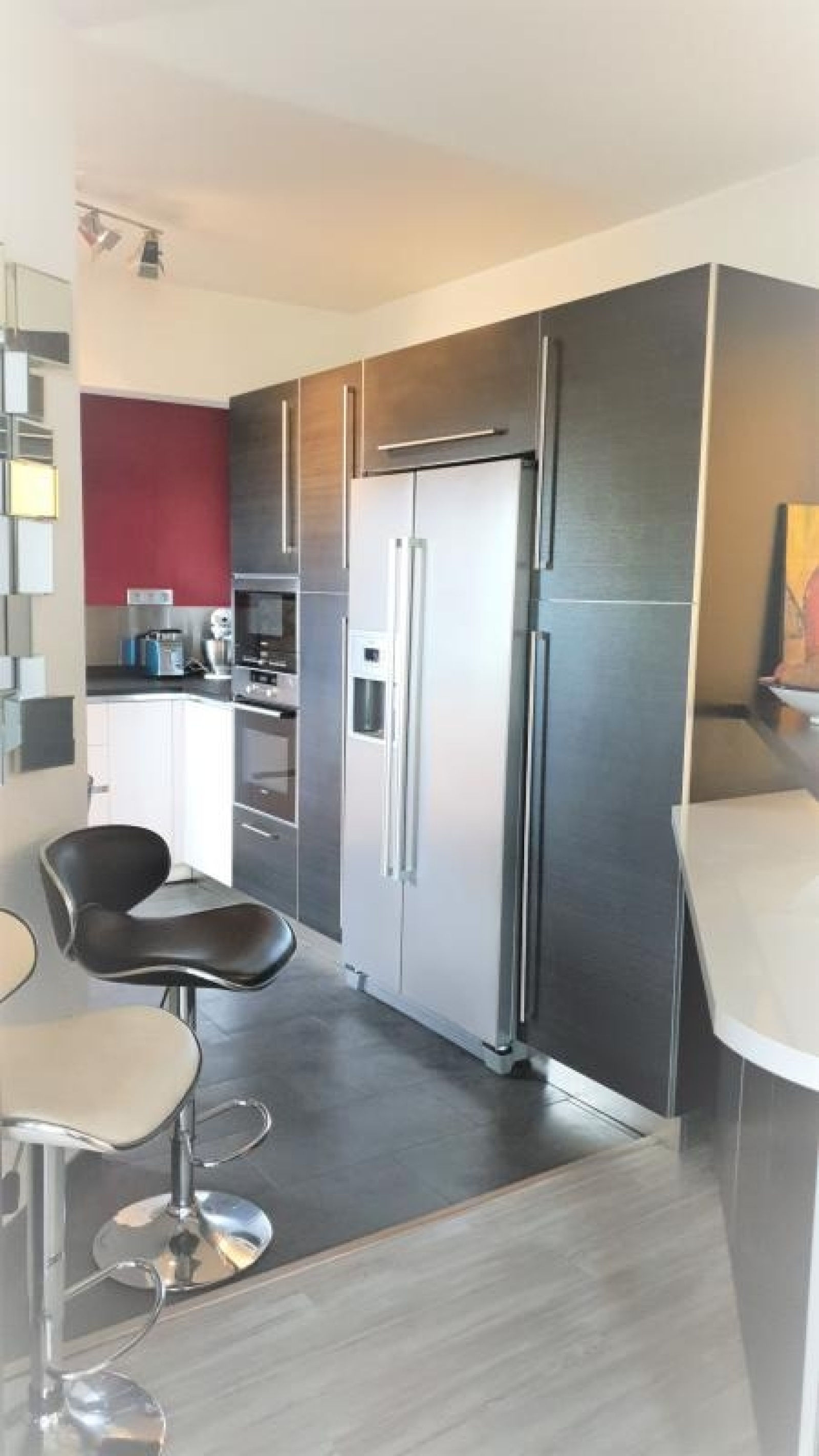 Il est composé d'un grand salon donnant sur une belle loggia de 12 m2, d'une superbe cuisine ouverte équipée , d'une chambre de 11,5 m2 et d'un bureau de 7,5 m2 transformables en 2 chambres de 9 m2.
