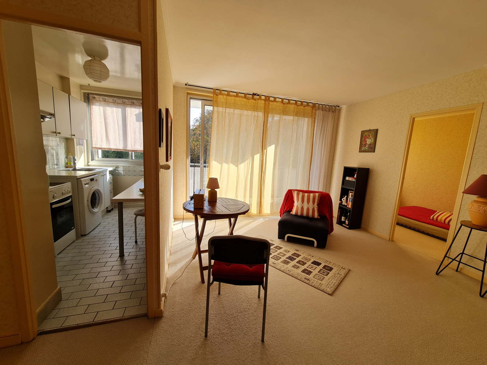 Cet appartement vous fait bénéficier d'un vestibule d'entrée avec placard, d'une cuisine équipée, d'un séjour donnant sur un balcon de 5 m2 avec une grande baie vitrée, 2 chambres, un couloir aménagé d'un double placard KZ, avec WC séparé, d'une salle de bain et de nombreux espaces de rangement.