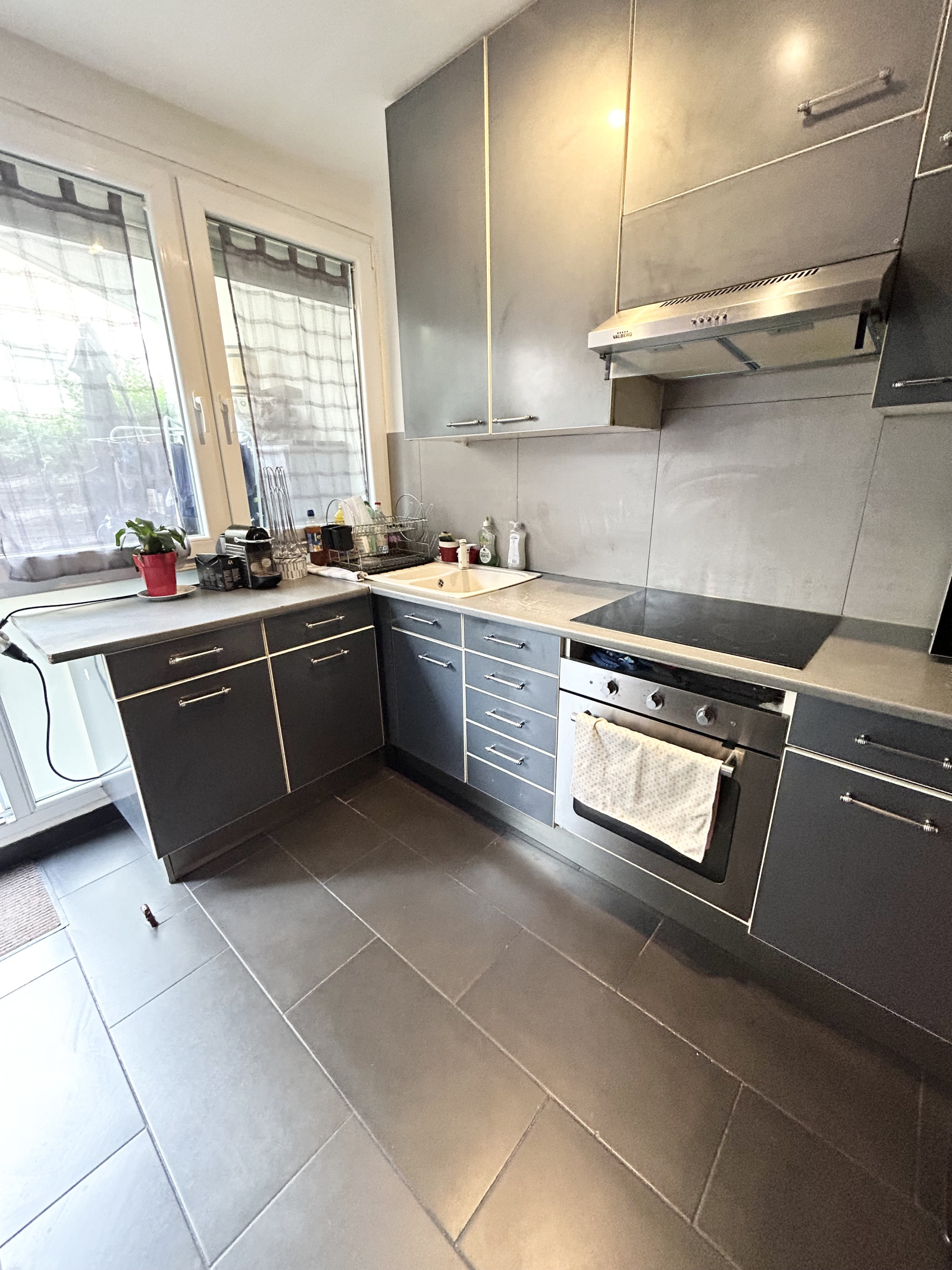 Dans une belle copropriéte bien entretenue et sécurisée, cet appartement en rez-de-jardin au calme donnant sur la cours intérieur de la résidence.