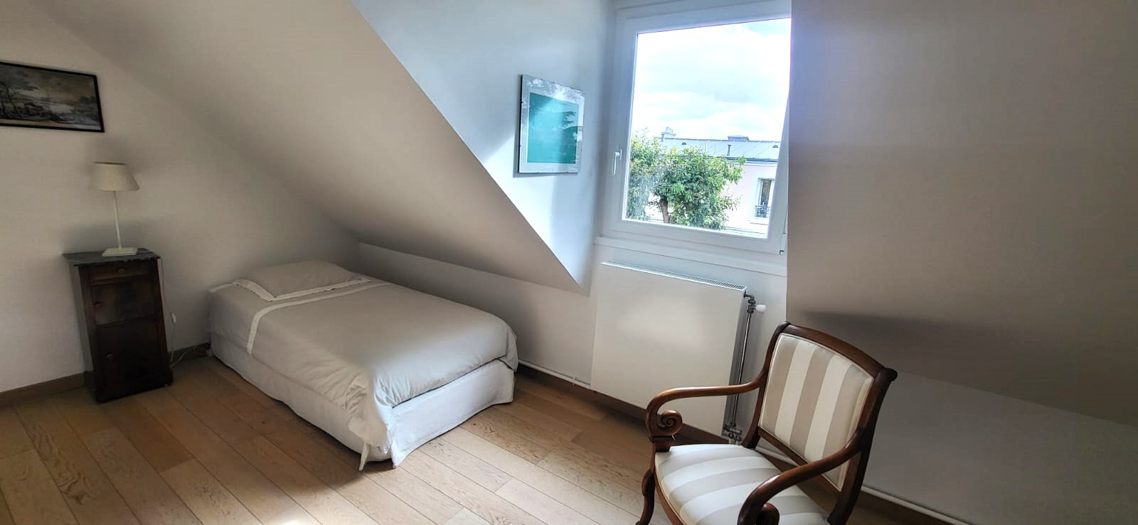 Très jolie vue dégagée et dominante sur le quartier et les jardins environnants, cette maison vous séduira par sa disposition généreuse et optimale et la qualité des matériaux et de la rénovation.