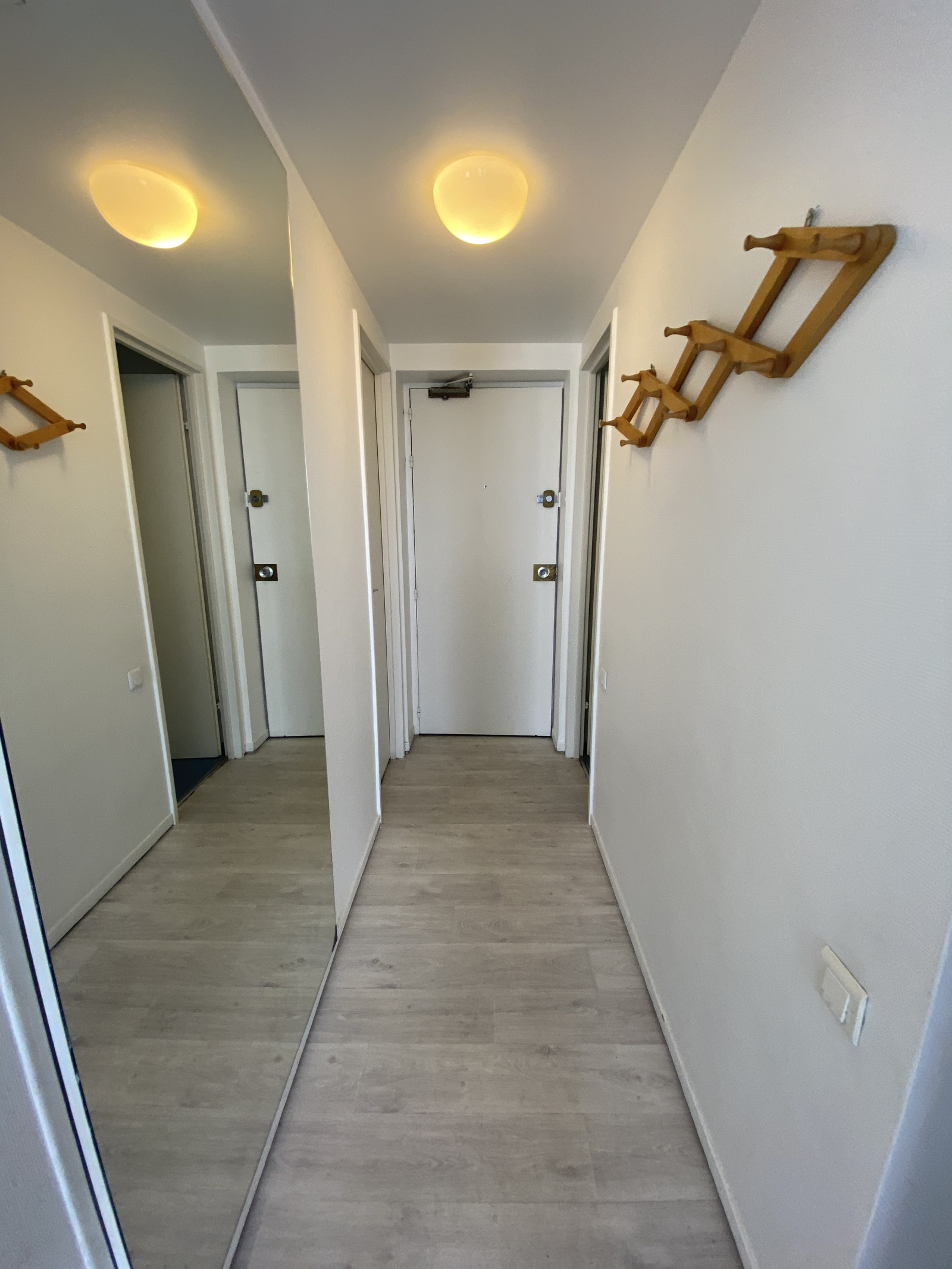 Cet appartement à l'agencement idéal, sans perte de place, comporte un séjour avec une cuisine ouverte, une salle de bains et un wc séparé.