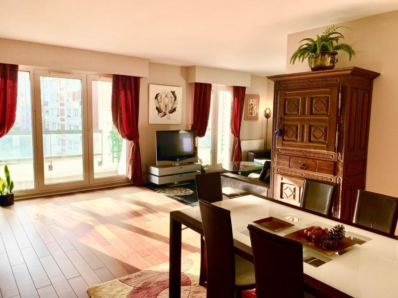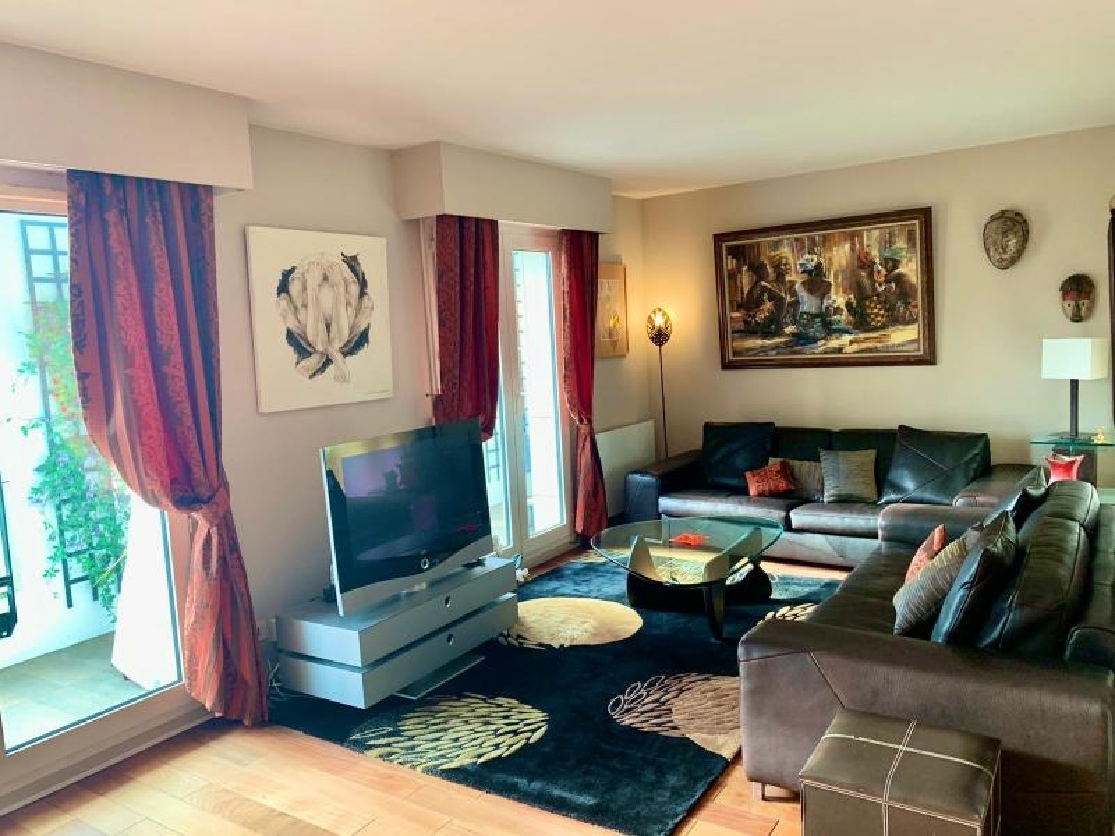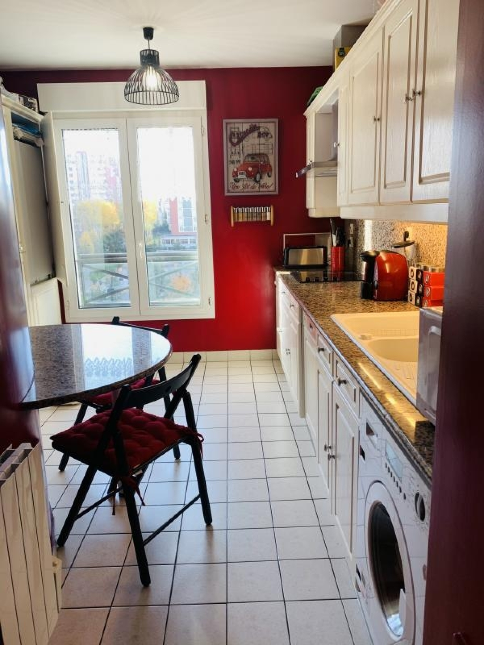 101m2 + balcon 9m2, double séjour, 3 chambres, cuisine équipée (granit), salle de bain + salle de douche/wc (2 wc).