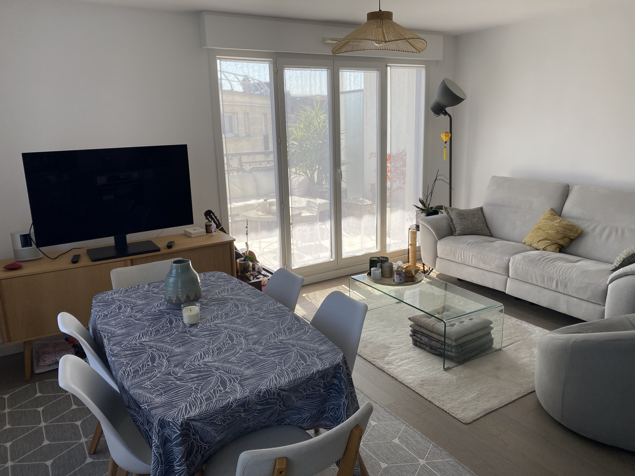 Dans une copropriété de standing, Aucuns travaux à prévoir dans l’appartement. Séjour ouvrant sur une TERRASSE, cuisine ouvert aménagée équipée, 2 chambres, une salle de bains, WC séparé et placards, et Deux Places de PARKING en sous-sol complètent ce bien.