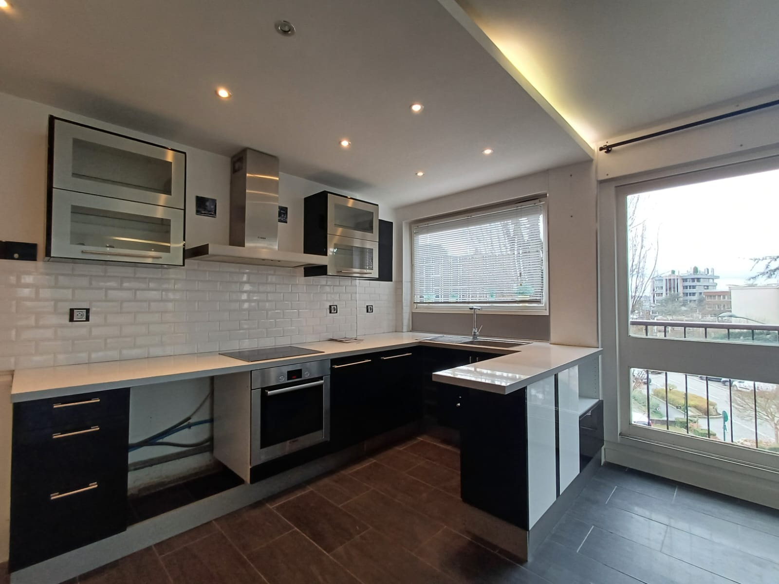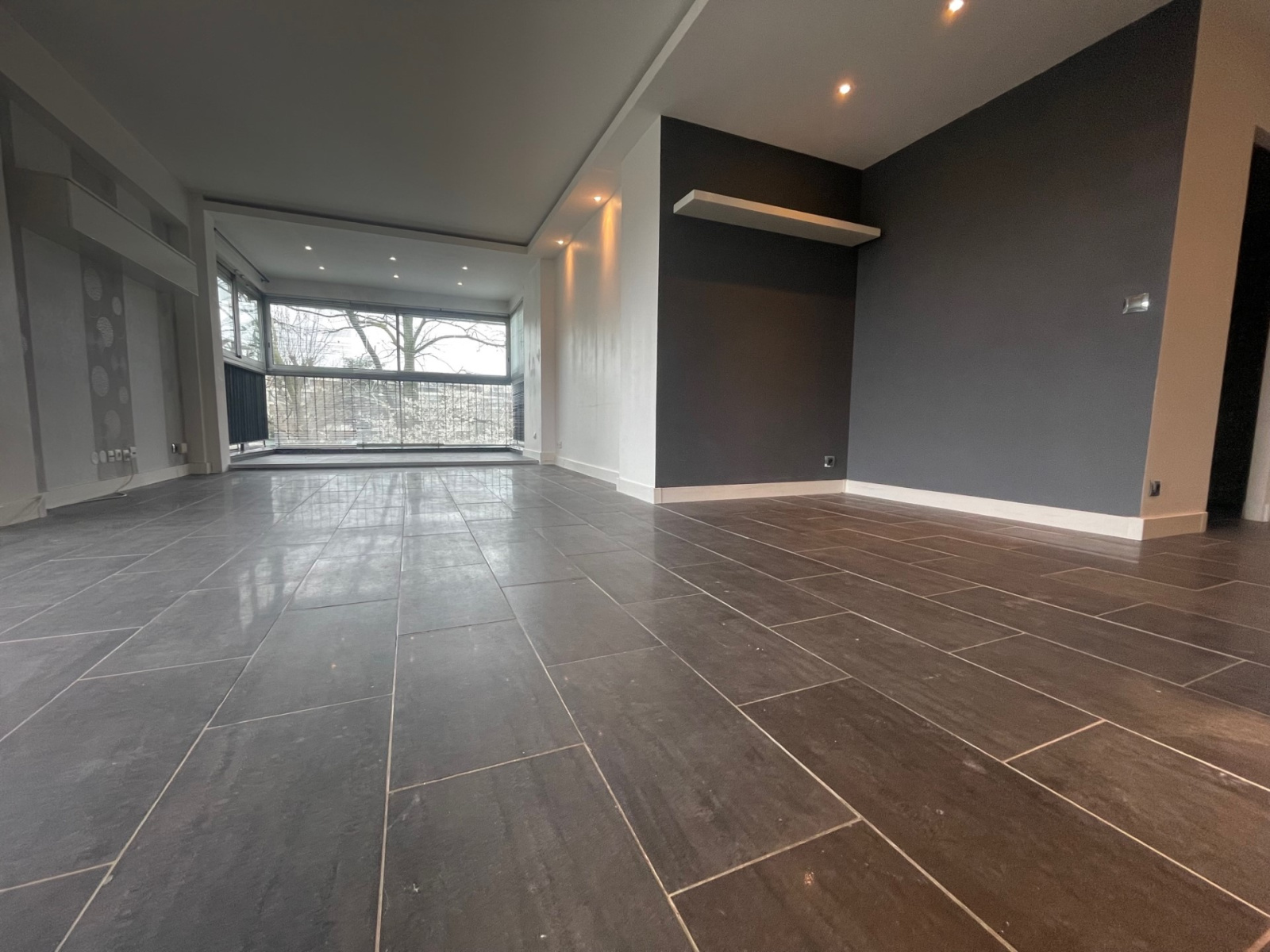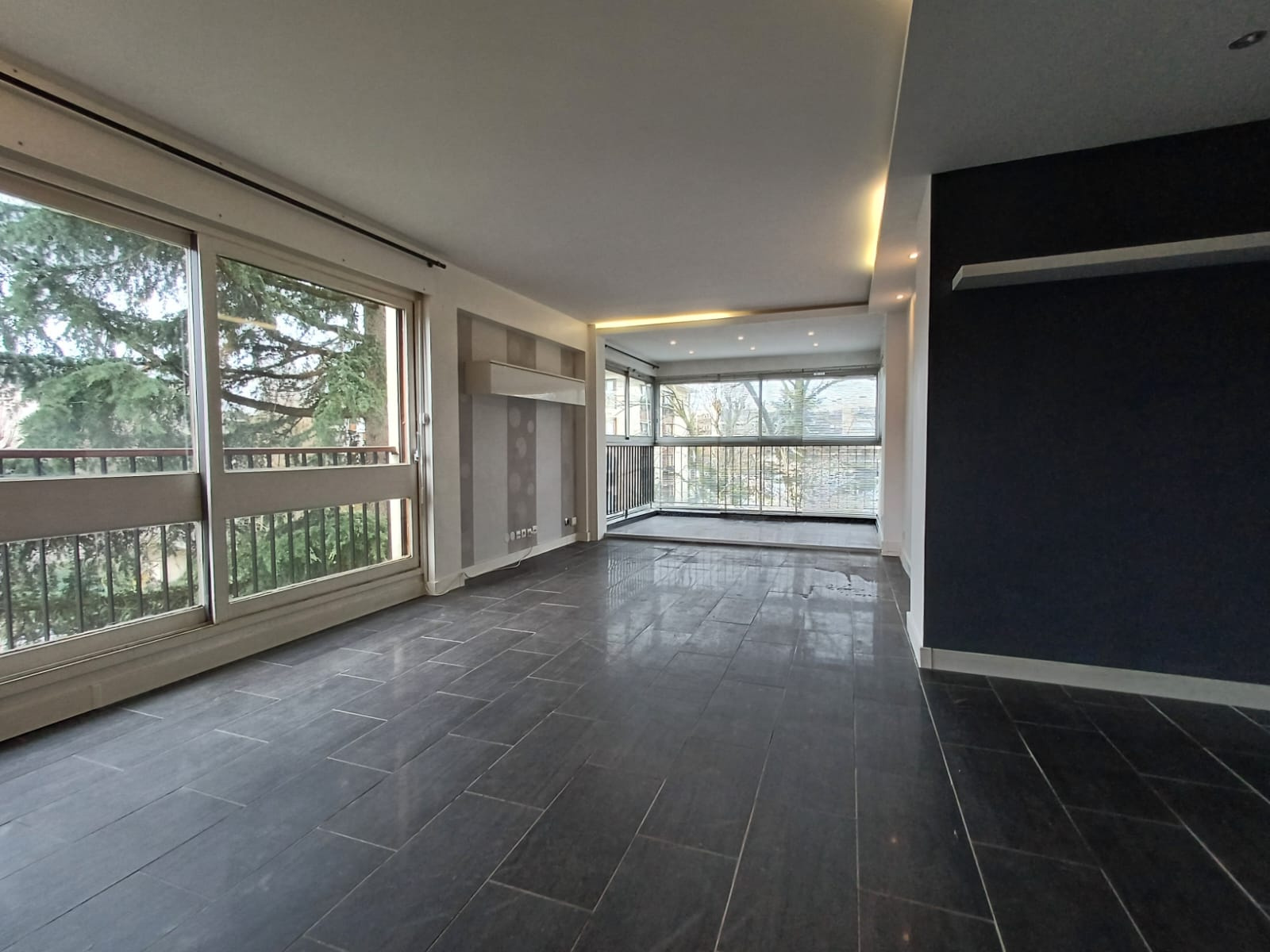 Il comprend : Une entrée avec WC, un très grand séjour baigné de lumiére exposé Sud/Ouest, prolongé par une loggia intégrée en double vitrage.