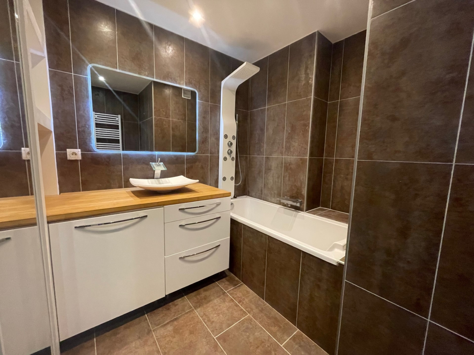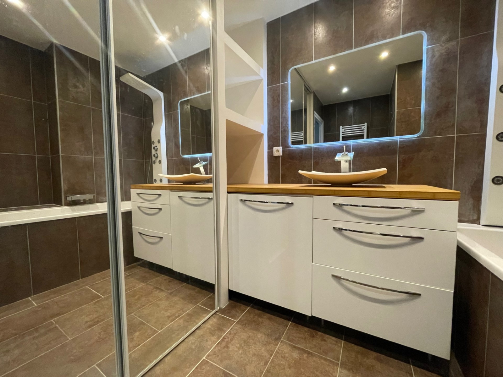Dans l'espace nuit : Un couloir avec de nombreux rangements, deux belles chambres avec volets roulants éléctriques et double vitrage, dont une avec rangement. Une magnifique salle de bains profitant d'un emplacement pour la machine a laver.