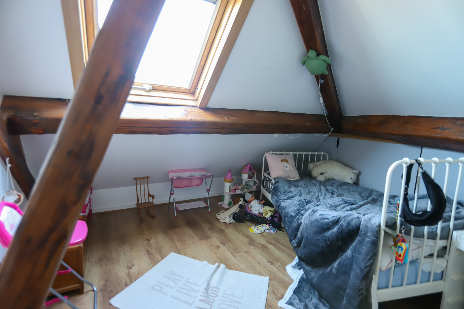 A l'étage, Il y a une pièce palière que vous pourrez aménager en bureau, une chambre pour les enfants avec une salle d'eau avec WC puis un deuxième espace qui sert de chambre pour bébé.