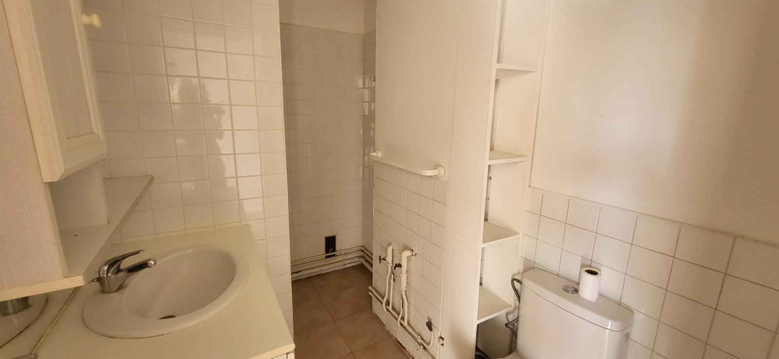 Une entrée dessert une salle d'eau avec douche, toilettes et vasque, l'espace de vie se compose de deux parties, un coin kitchenette avec possibilité de créer un espace séjour, et une partie nuit.