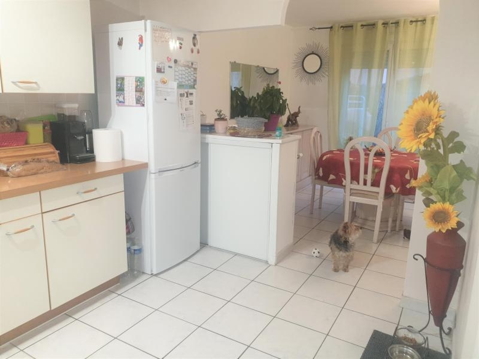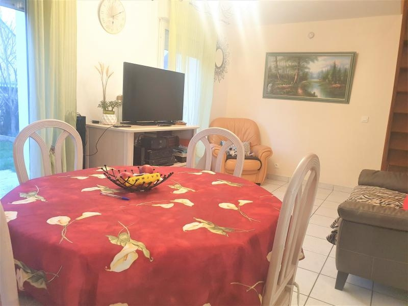 Maison mitoyenne de 63m2 comprenant au rdc 1 entrée avec wc séparés, 1 cuisine ouverte aménagée et un séjour qui s'ouvre sur un jardinet de 49m2 avec sa terrasse et son cabanon. A l'étage, 3 chambres et 1 salle de bains avec WC. Garage intégré.