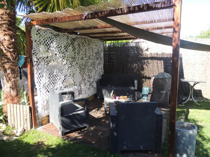 Terrain de 283m2 avec jardin exotique, bananier, figuier, oliviers, cabane enfants, terrasse + salon de jardin sous abris. Possibilité de garer 2 voitures. Interphone.