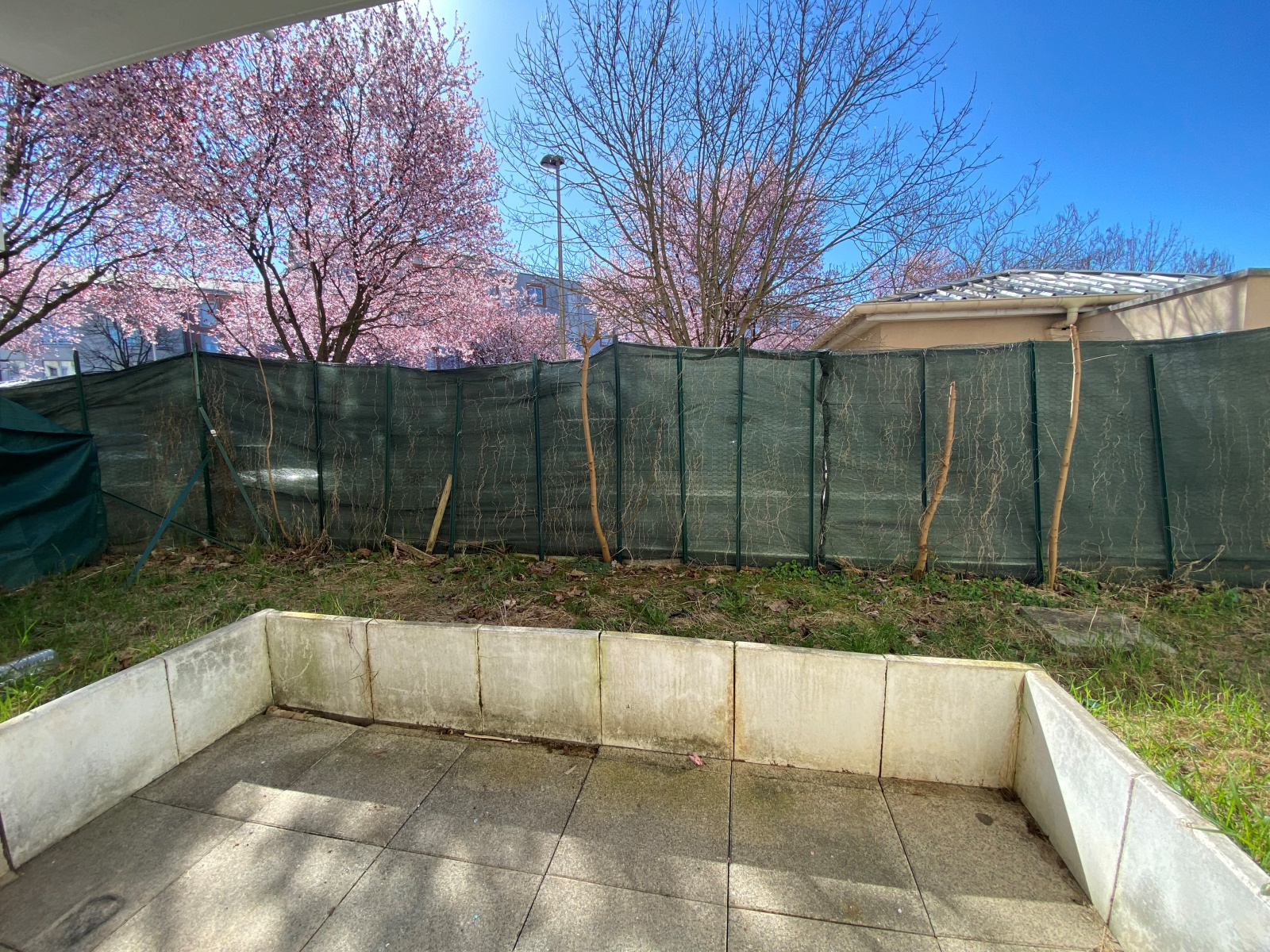 Appartement deux pièces de 39m² en rez-de-jardin au sein d'une résidence sécurisée comprenant : une entrée avec placard, un cuisine séparée, un séjour avec accès au jardin de 17m² avec sa terrasse de 5m², un couloir avec rangement qui dessert la chambre et la salle de bains avec WC.