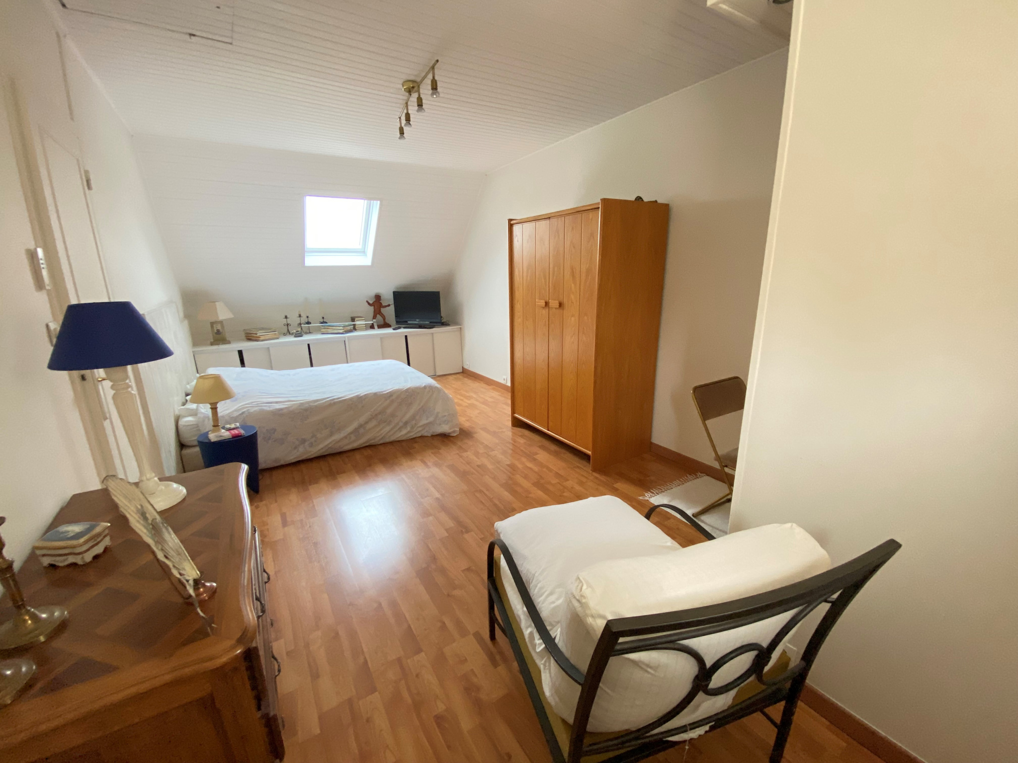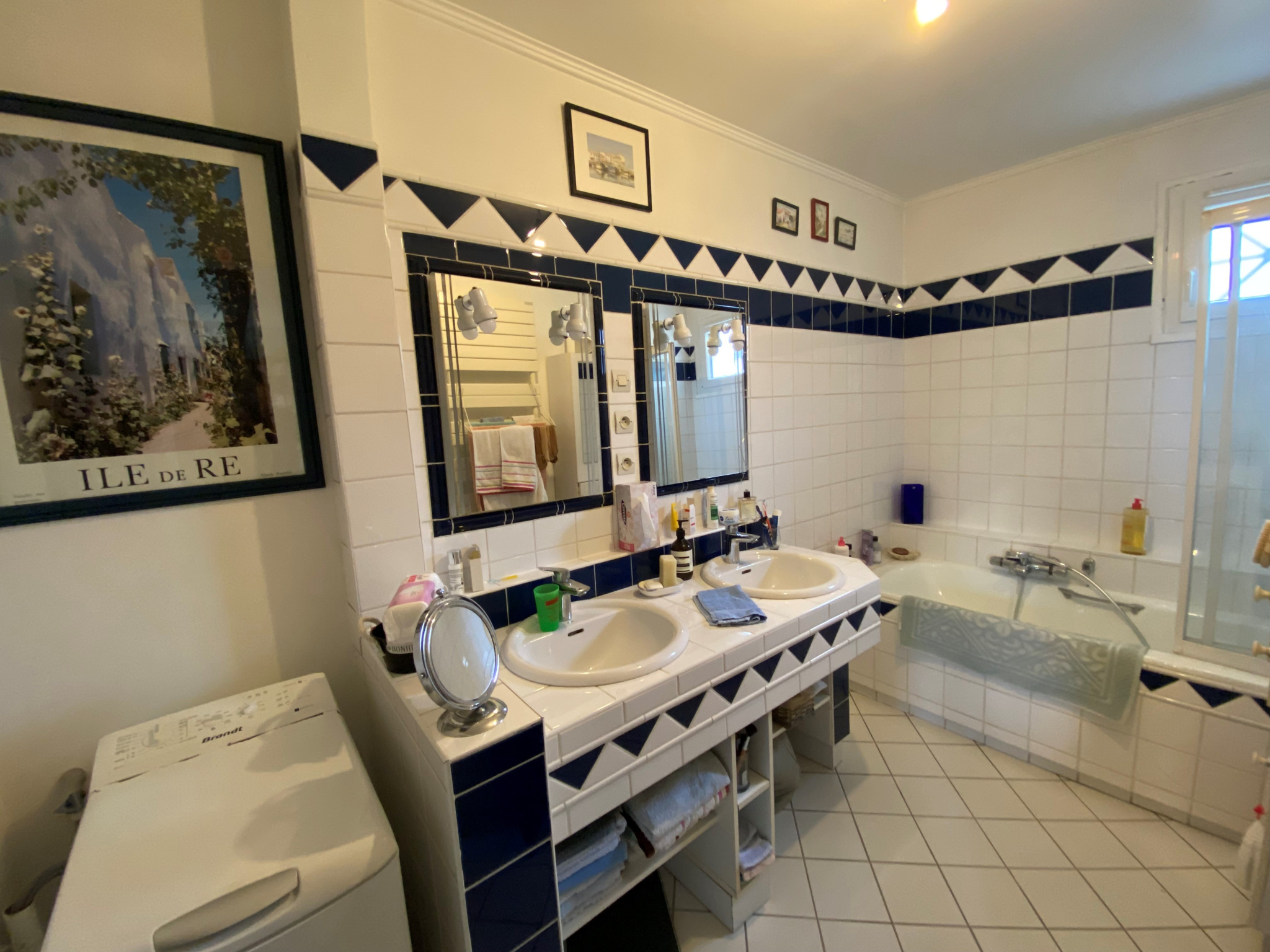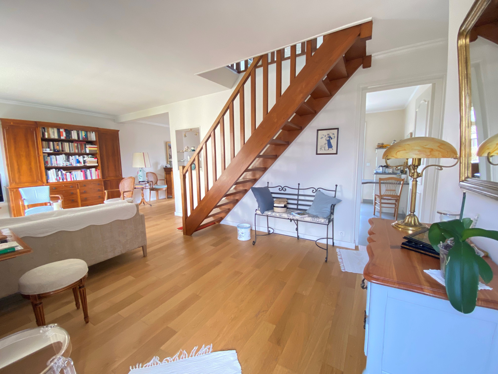 Elle se compose au rez-de-chaussée : d'une entrée ouverte sur un séjour salle à manger traversant et lumineux avec terrasse et jardin, d'une cuisine indépendante et spacieuse aménagée et équipée, d'une grande salle de bains, d'une chambre et d'un WC; à l'étage : d'un palier aménagée en bureau et bibliothèque, de deux chambres volumineuses, d'une salle d'eau avec WC et d'un dressing.