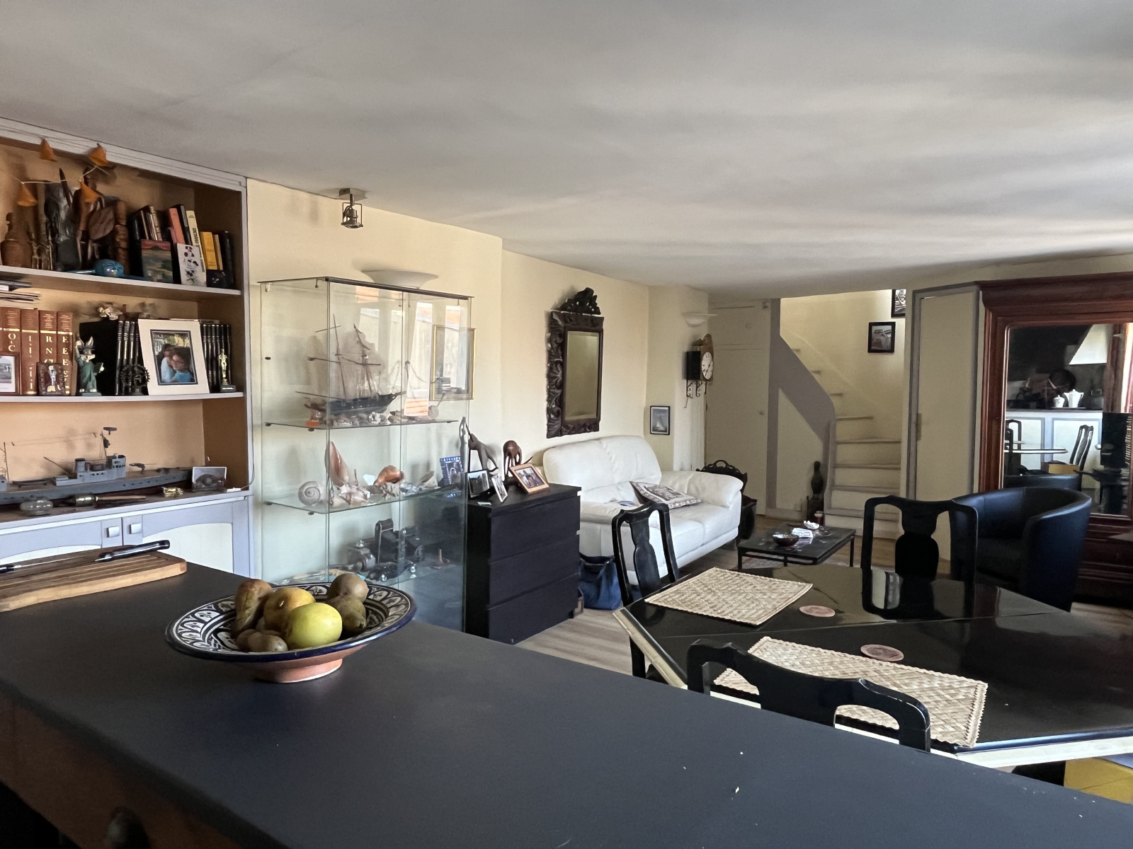 L'appartement se compose au niveau inférieur, d'une belle entrée avec rangements, d'une spacieuse et lumineuse pièce de vie ( séjour et cuisine américaine) d'environ 29 m2, d'une salle d'eau avec WC et à l'étage d'une chambre/bureau de 4,40 m2 (soit 13,31m2 habitable). Une cave complète le bien.