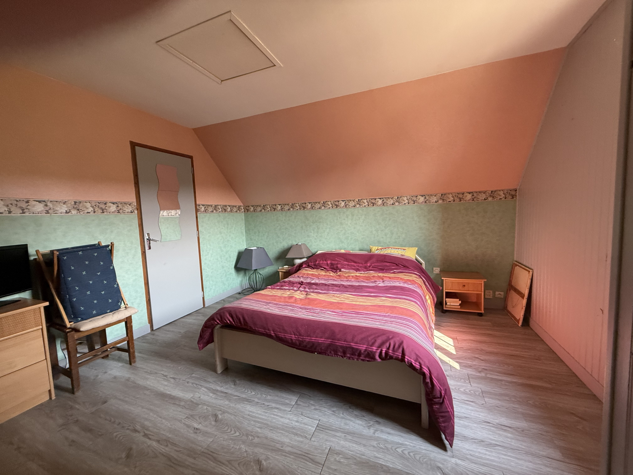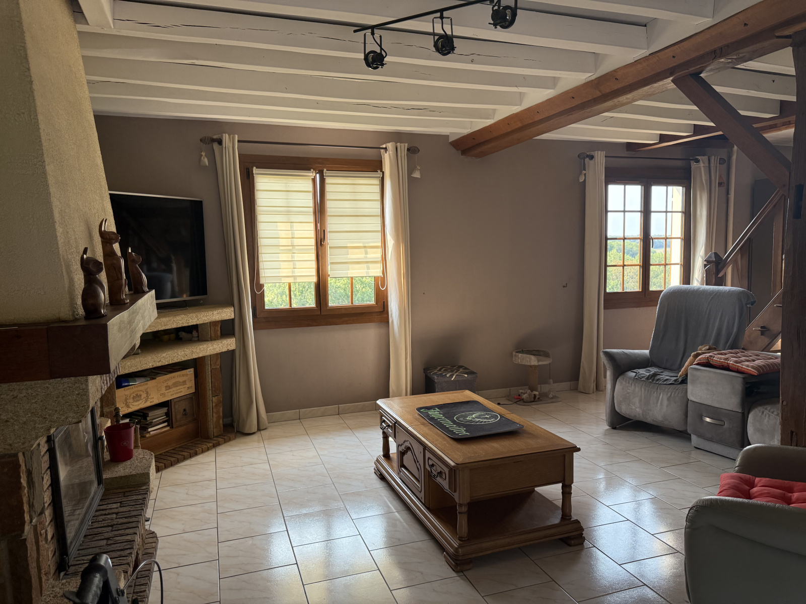 - Rez-de-chaussée : vaste pièce de vie lumineuse de près de 60 m² comprenant salle/salon avec cheminée insert cuisine aménagée et équipée, une chambre, une salle d’eau et un WC indépendant.