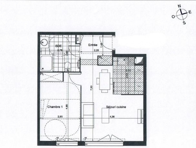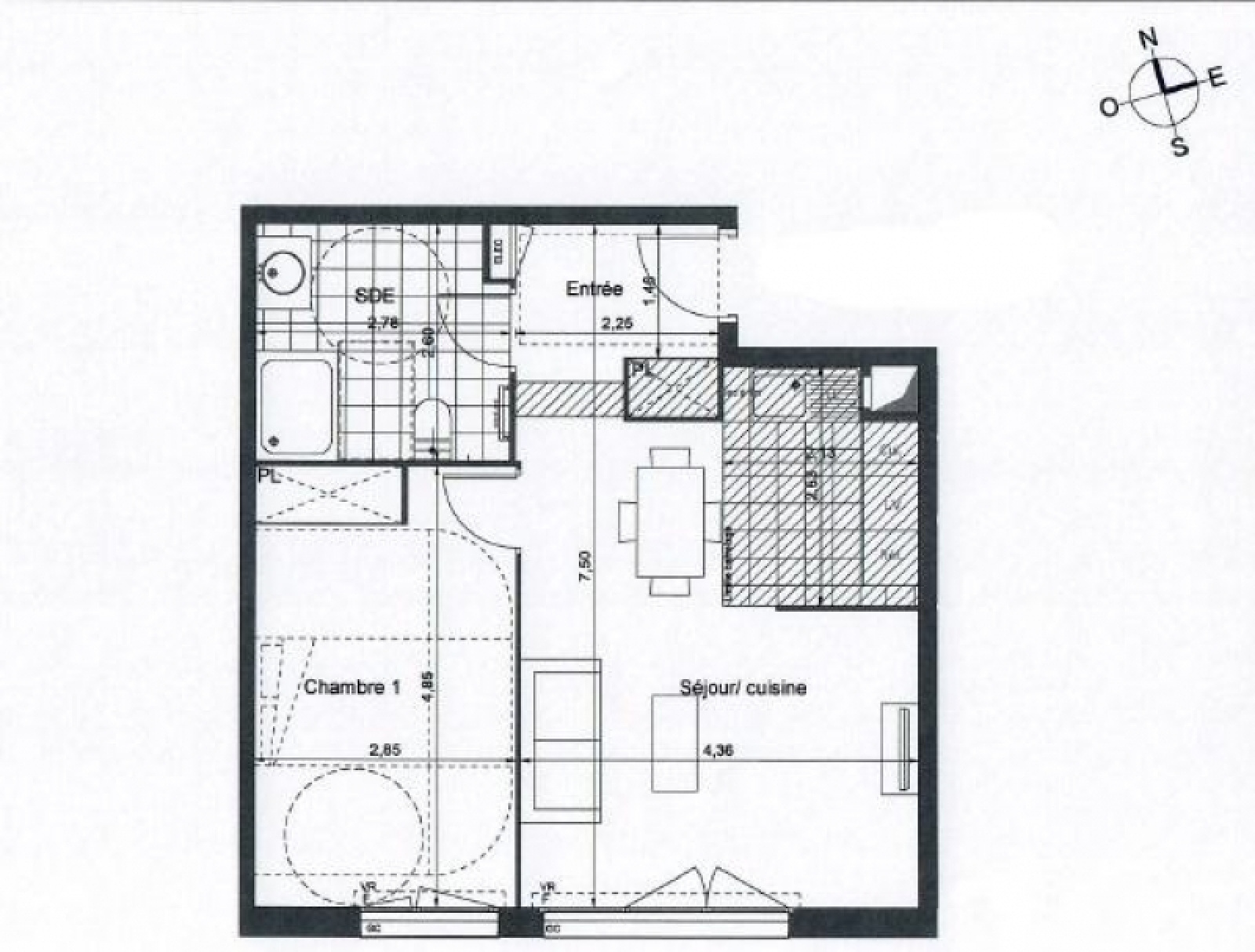 Cette appartement comprend: une entrée avec placard, salle de bain avec mitigeur douche mural thermostatique et WC, 1 chambre avec placard portes coulissantes, séjour avec emplacement de cuisine ouverte entièrement à aménagée selon ses goûts.