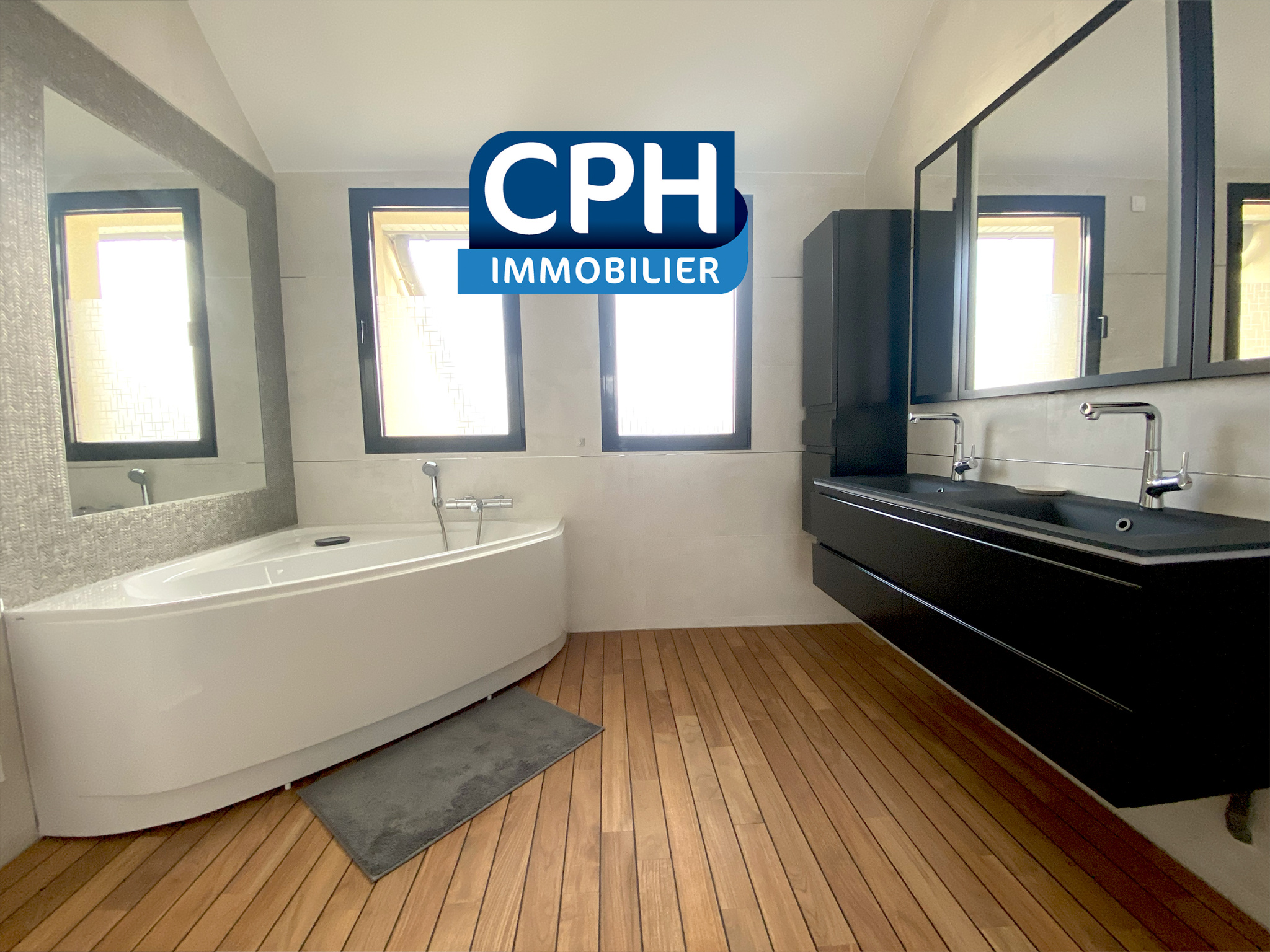 Cette maison se compose au rez-de-chaussée, d’une entrée avec placard, de WC séparés, d’un vaste séjour de 47m², d’une magnifique cuisine équipée de 13m². Au 1er étage, 3 chambres dont une avec salle d’eau, 1 salle d’eau et des WC séparés. Au 2° niveau, une suite avec terrasse et salle de bain, un bureau, des wc séparés, un dressing avec vélux. Au 3ème et dernier niveau, une grande pièce mansardée de 27m², très lumineuse. Enfin, au sous-sol, un espace aménageable en cave à vin, une buanderie et un garage pour 3 voitures. Joli petit jardin à l’arrière de la maison avec terrasse.