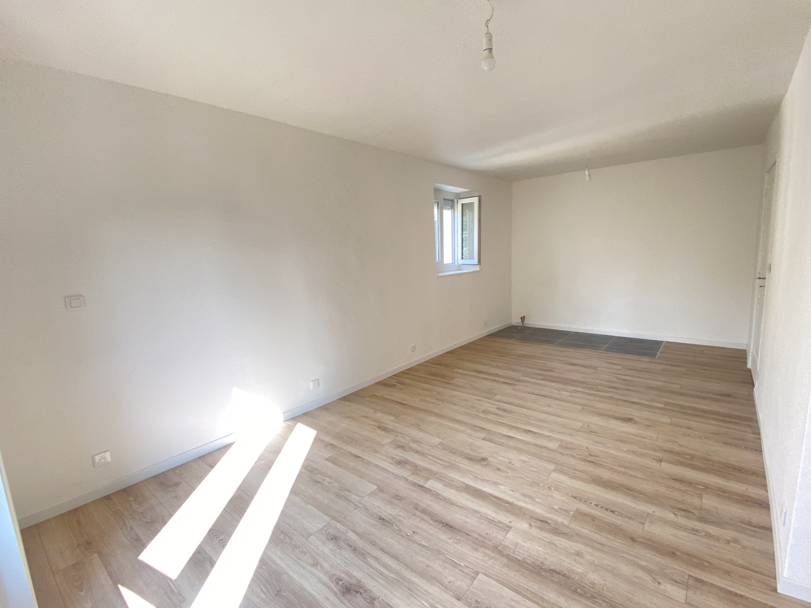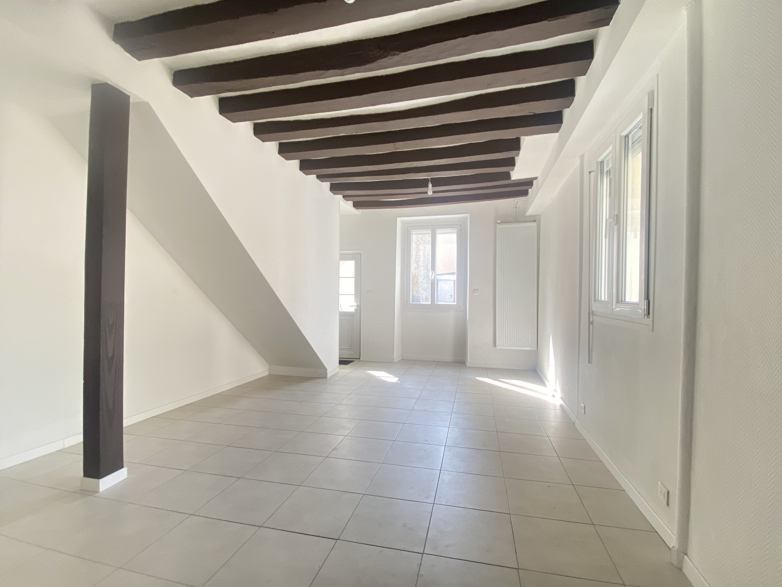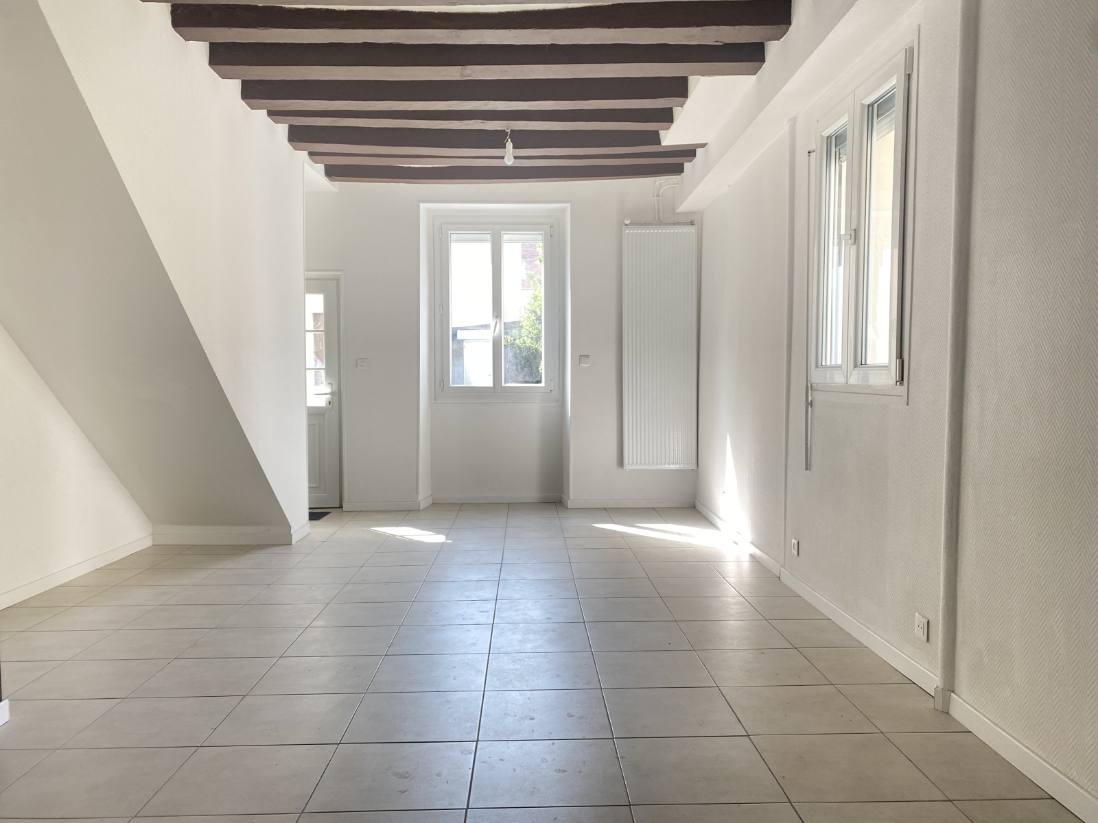 - Au RDC : séjour lumineux de 24 m², espace cuisine de 15 m² à aménager, chambre et salle d'eau avec WC