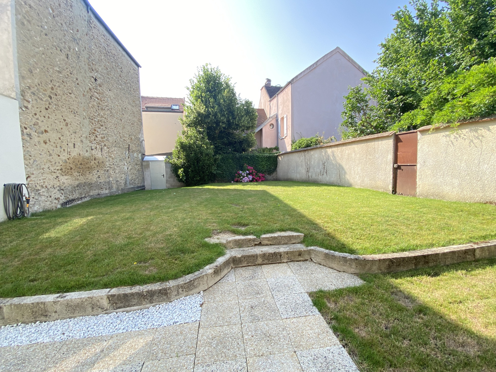 Jardin exposé SUD EST de 200m² accessible depuis le RDC. Vous retrouverez un espace terrasse ainsi qu'un jardin.