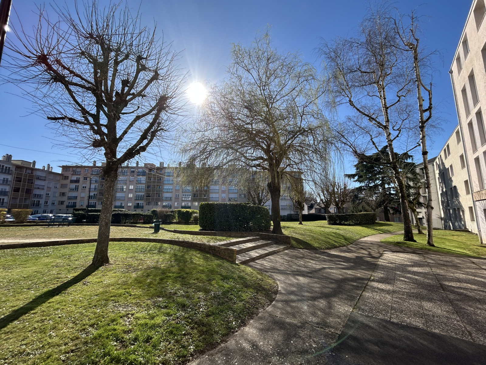 Situé à 10mn à pied du cente-ville, commerces de proximité au pied de l'immeuble, cet appartement 3 pièces d'environ 70 m² jouit d'un emplacement appréciable par son orientation côté parc de la résidence. Il se compose d'une entrée, d'un séjour lumineux, d'une cuisine séparée et aménagée et son arrière cuisine, de deux chambres, d'une salle de bains et d'un wc indépendant.