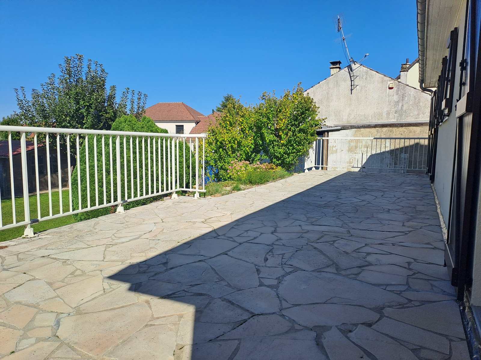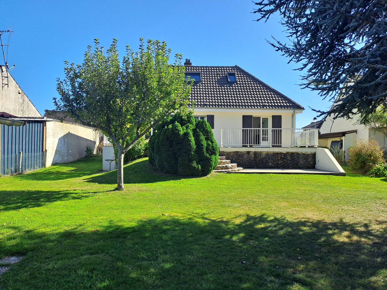 Elle se compose d'une entrée sur séjour traversant avec balcon et terrasse, d'une cuisine équipée, de deux chambres dont une avec dressing, d'une salle de bain avec douche thalasso et d'un wc indépendant. L'étage sous combles: une chambre, deux greniers et un wc séparé. Au sous-sol, plusieurs espaces et un garage permettent de nombreux stokages et stationnement. Le jardin clos et arboré est agrémenté d'un abri de jardin.