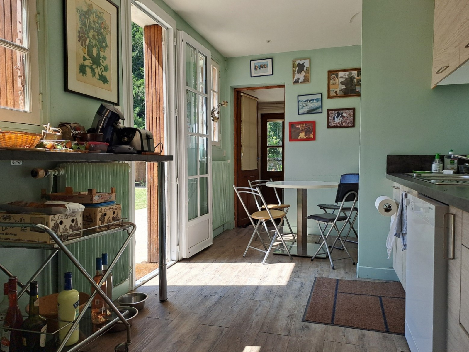 Au rez-de-chaussé, elle se compose d'une spacieuse pièce de réception traversante (salon / salle à manger) avec cheminée, une cuisine séparée lumineuse grâce à ses nombreuses ouvertes, un wc indépendant avec chaufferie.