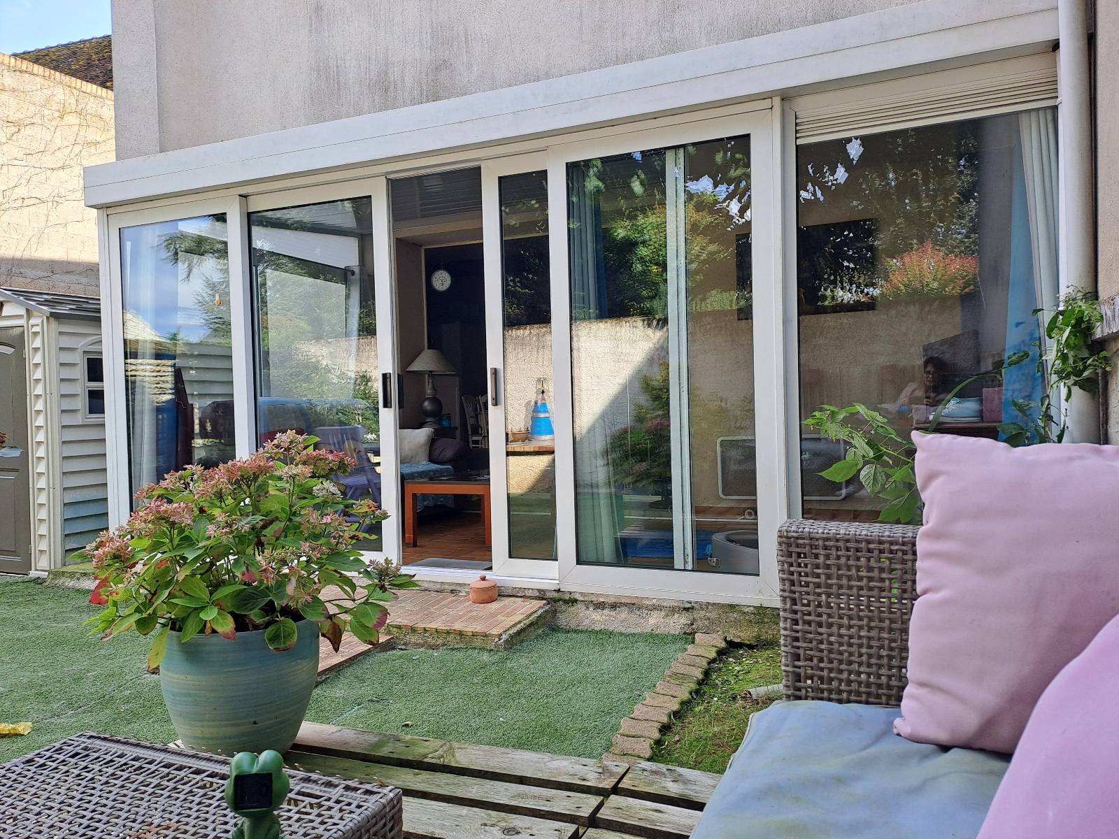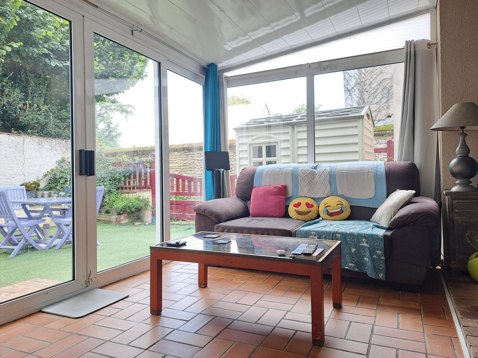 Il se compose d'une salle à manger avec coin cuisine et d'un espace séjour sous véranda chauffée d'environ 33 m² au total, d'une chambre avec placards intégrés et d'une salle de bains avec wc.