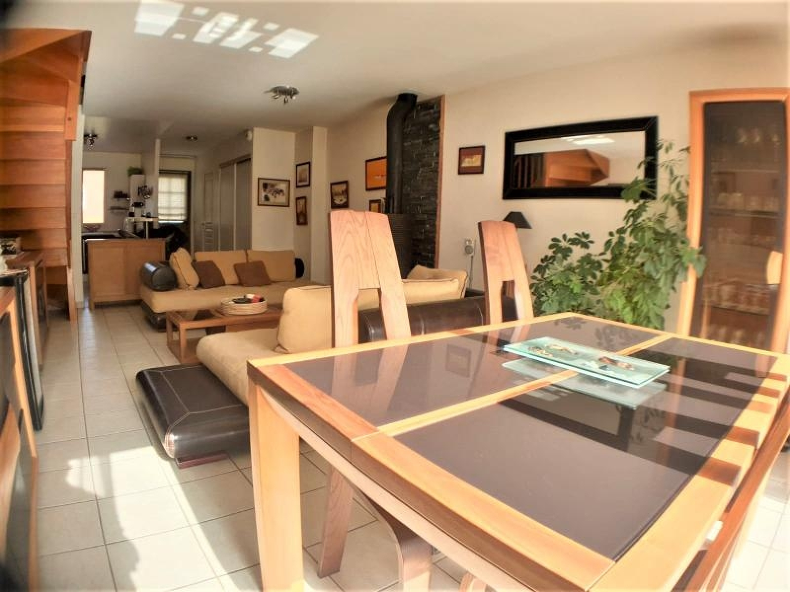 Maison mitoyenne en triplex de 93m2 en copropriété avec jardinet privatif. Au rez-de-chaussée : 1 entrée avec un grand placard, 1 wc séparé, 1 cuisine ouverte aménagée et équipée, et 1 séjour de 27m2 qui s'ouvre sur le jardin et sa terrasse par une large baie vitrée de plus de 3m. La nature s'invite dans votre salon !