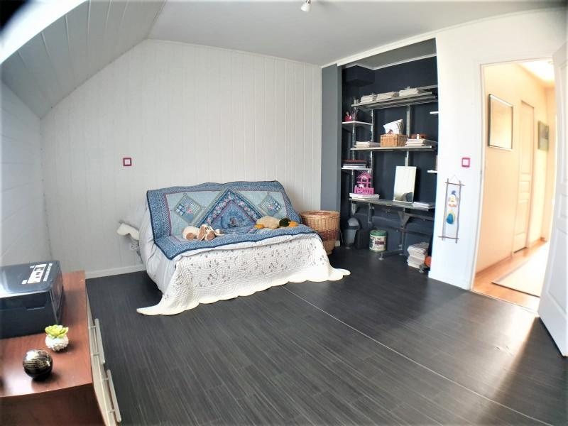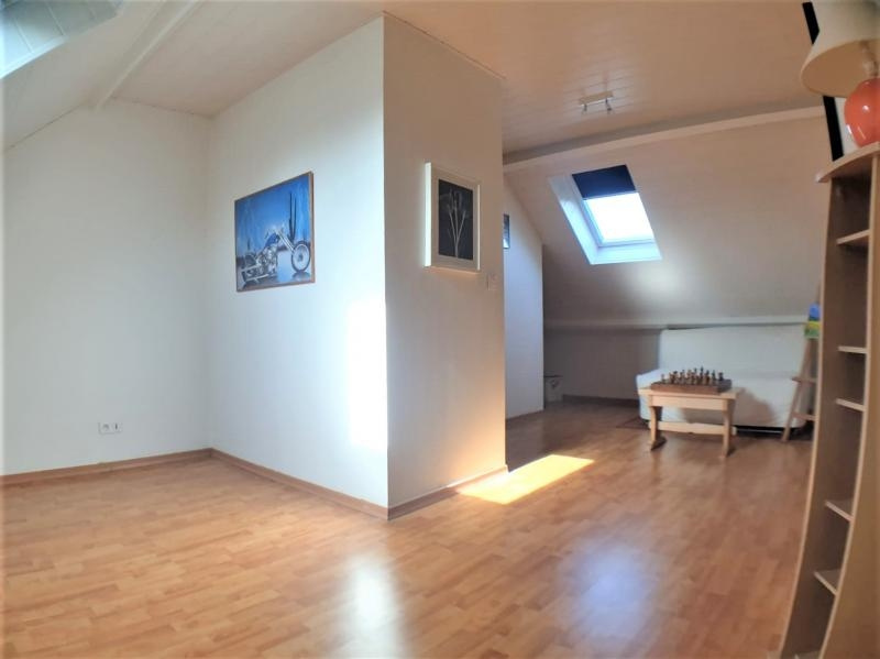 Au 1er étage, 2 chambres, 1 salle de bains avec wc et au 2eme étage, 1 grande chambre pouvant être divisée en 2 plus petites.