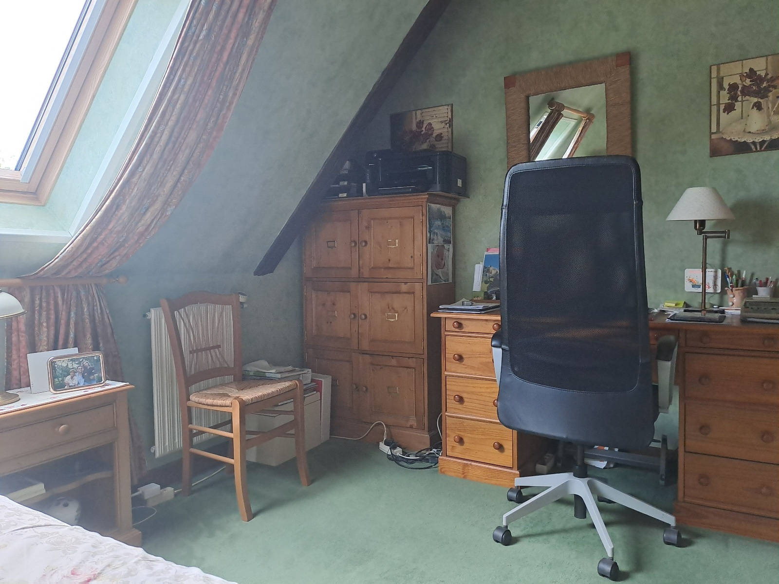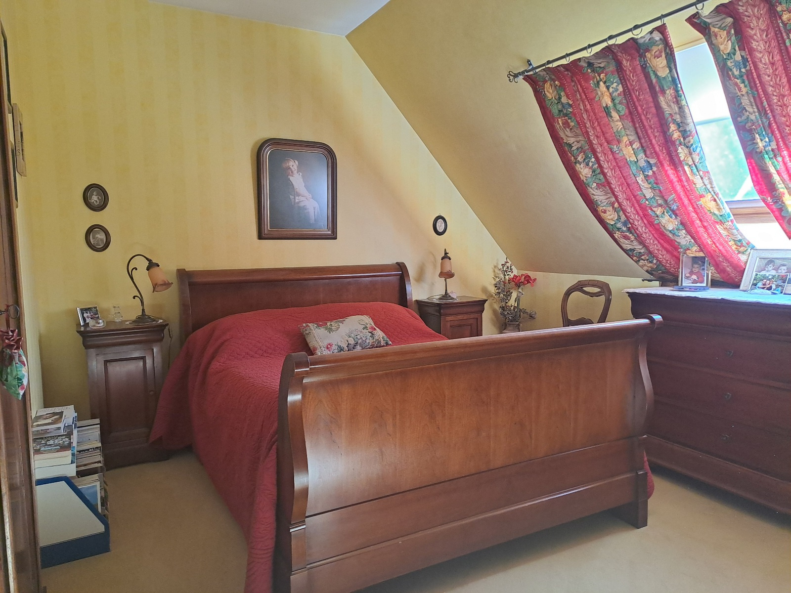 A l'étage, trois belles chambres, salle de bains avec wc.