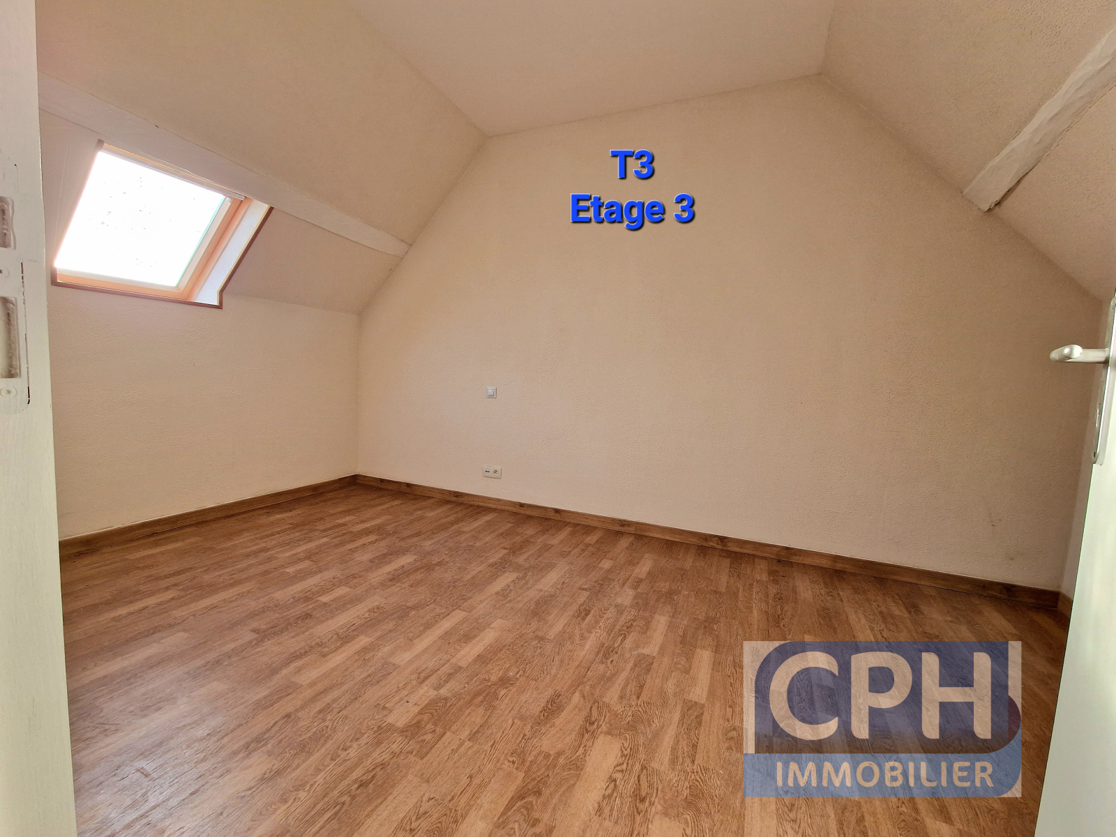 - 3ème (sous combles) : T3 comprenant kitchenette ouverte sur salle, salle d'eau, wc séparés, salon, chambre.