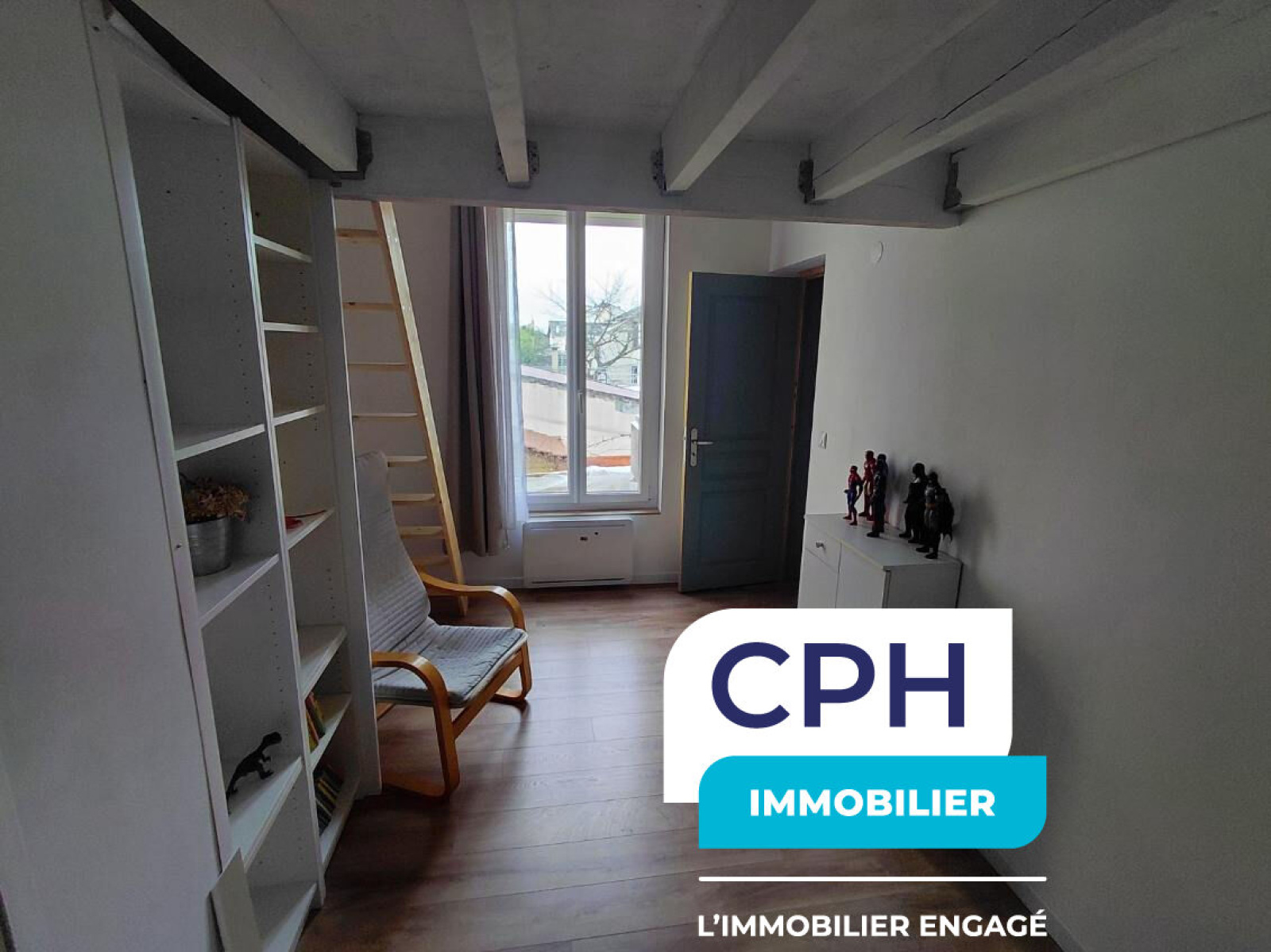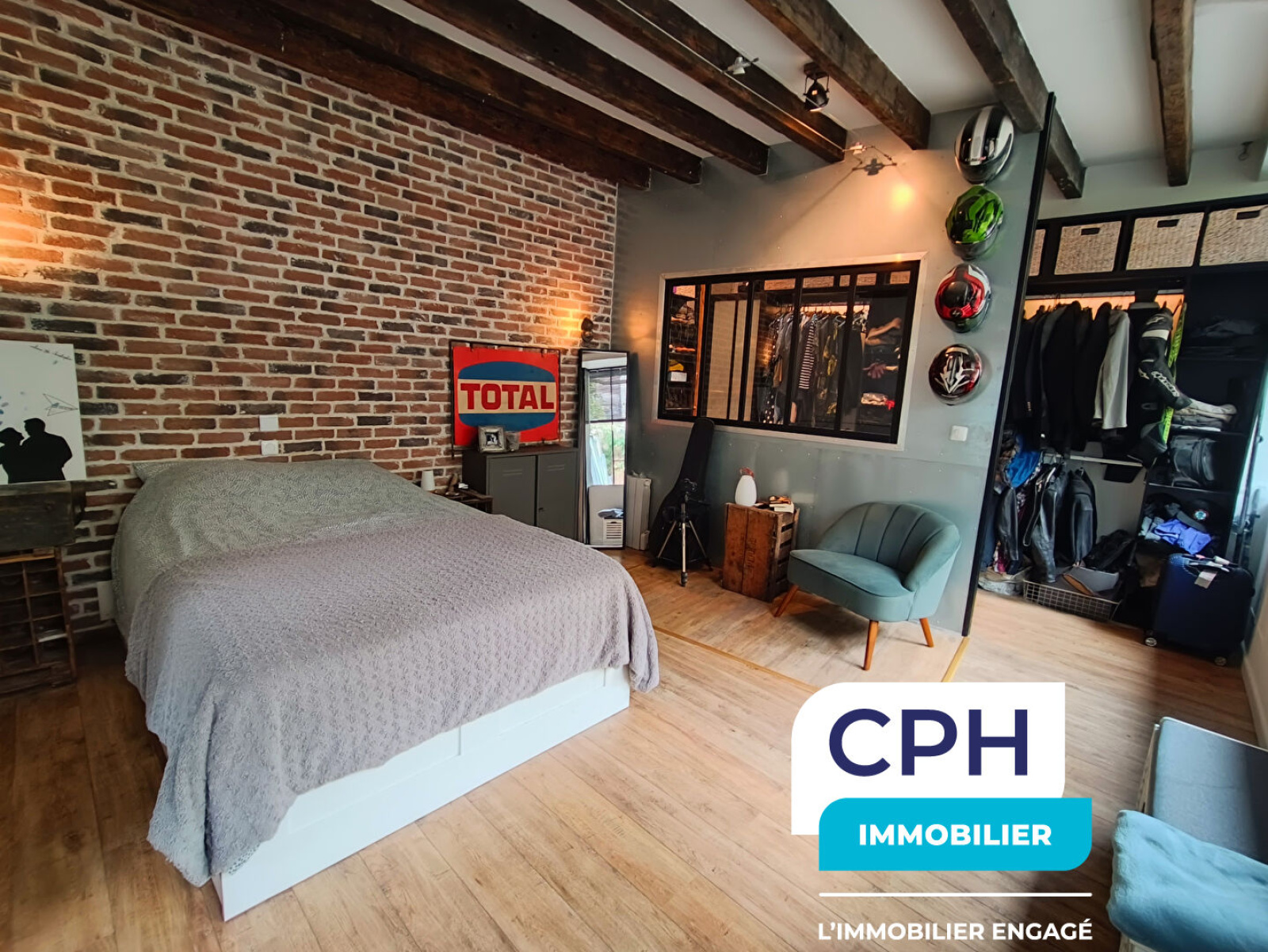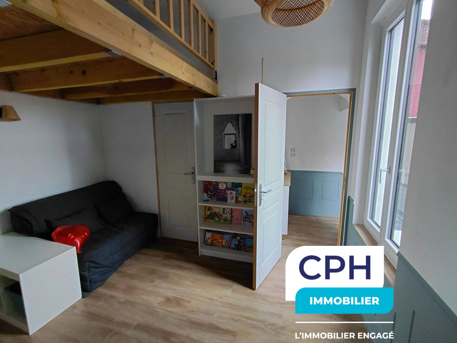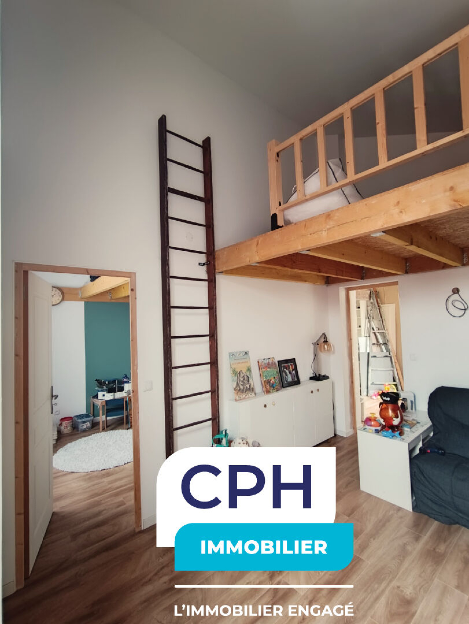 À l'étage, un palier dessert deux belles chambres avec mezzanines, apportant charme et volume, ainsi qu'une seconde salle de bains.