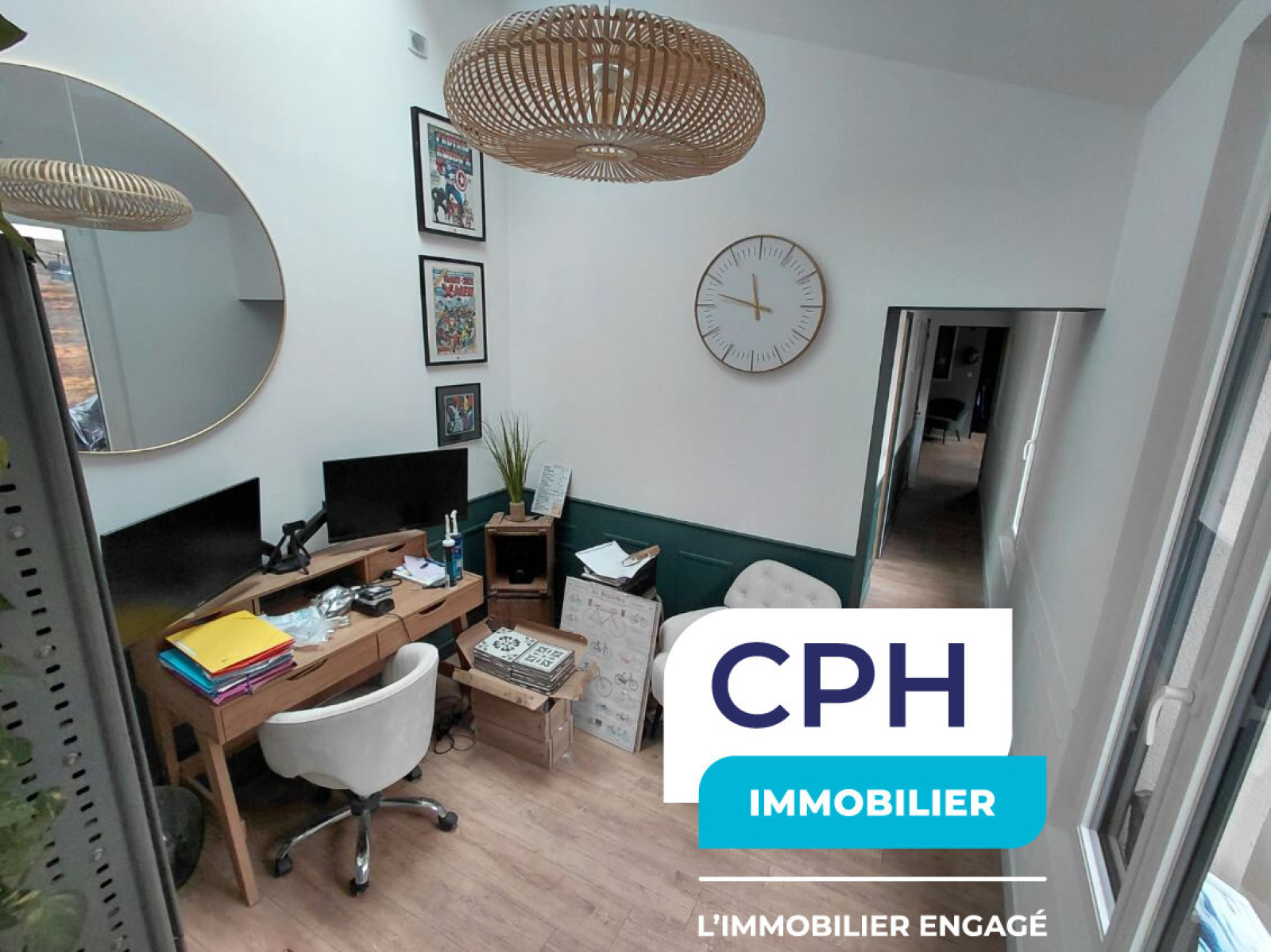 Dès l'entrée, vous serez séduit par un espace de vie lumineux et convivial, comprenant un séjour spacieux avec cuisine ouverte aménagée et équipée. Le rez-de-chaussée offre également un bureau (idéal télétravail), une chambre parentale avec sa salle de bains, ainsi que deux WC.