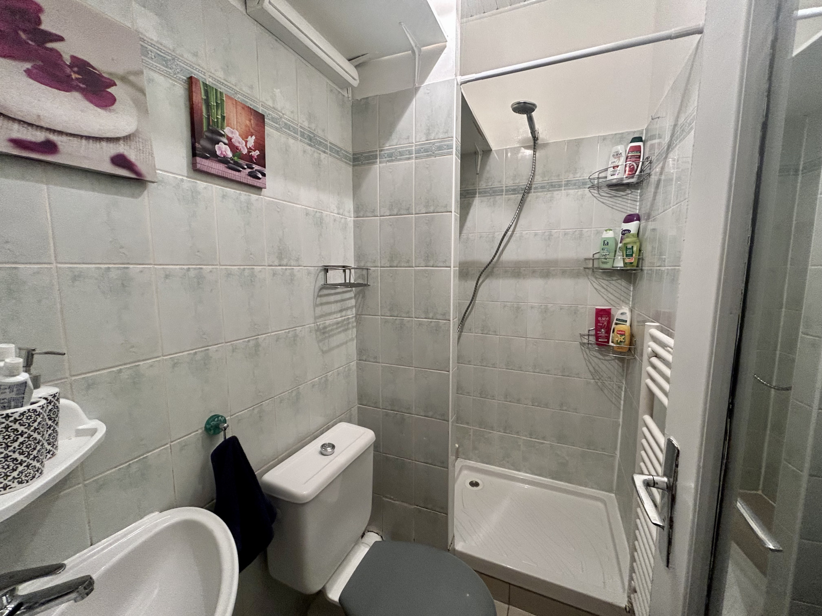 IMMO DE FRANCE vous propose un charmant appartement de type F2 situé au premier étage d'un immeuble d'une petite copropriété, comprenant une entrée, un séjour et sa cuisine ouverte, une chambre avec placards, une salle d'eau avec WC.