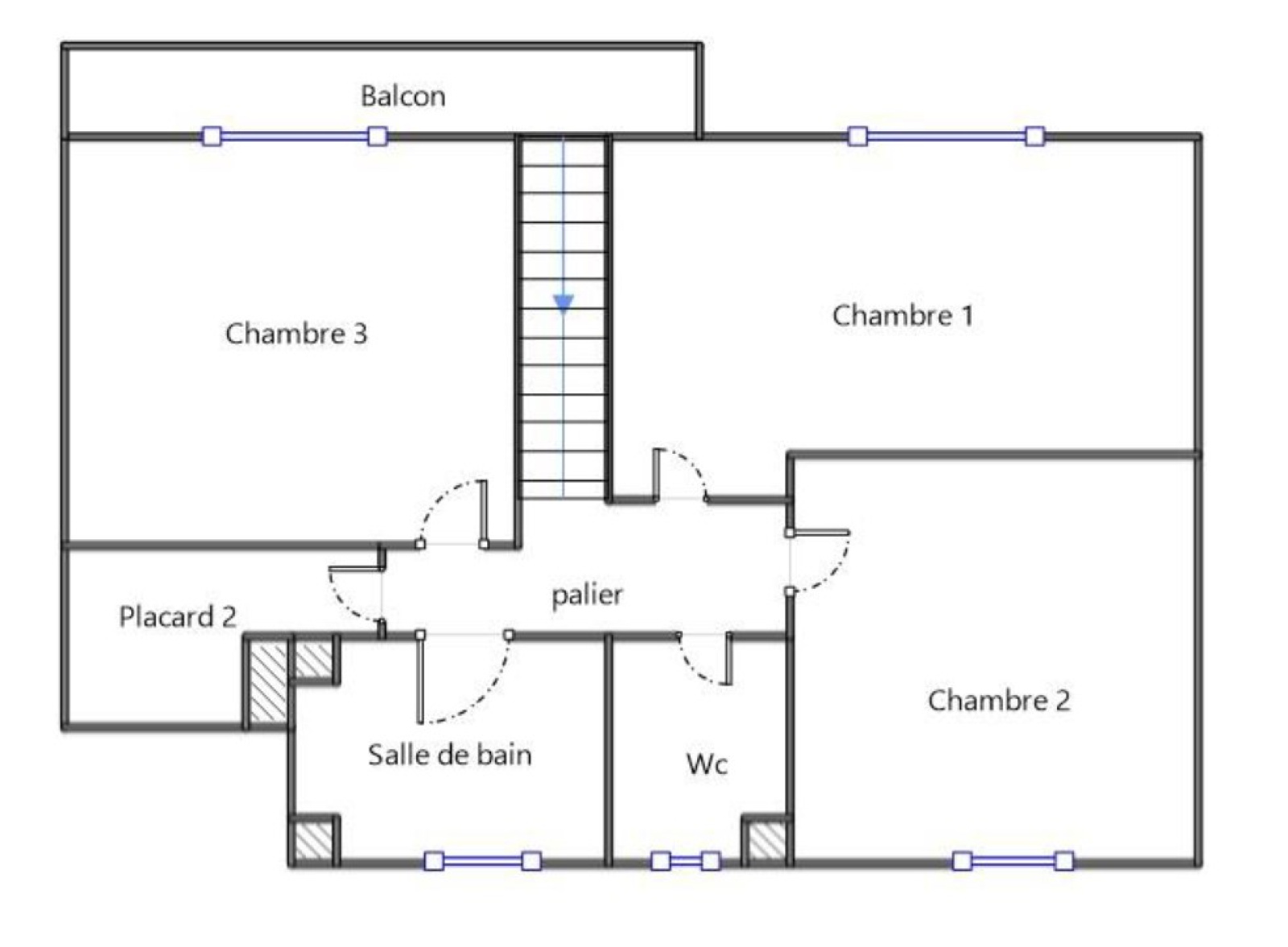 Cette maison de 97m2 habitables est composée au rez-de-chaussée d'une entrée, d'un double séjour de 25m², d'une cuisiné récente aménagée et équipée, d'un placard, puis au premier étage l'espace nuit est composé d'un dégagement, d'une salle de bains, de trois chambres dont une avec un balcon de et d'un WC séparé.