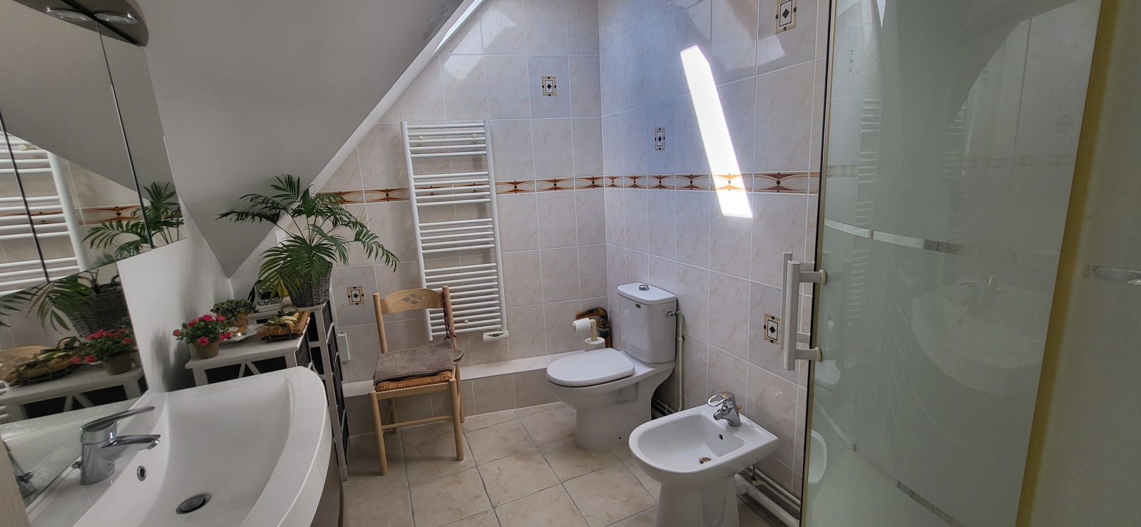 Au 2è étage vous trouverez 2 autres chambres mansardées de belle taille également, avec rangements, et une salle de bains.