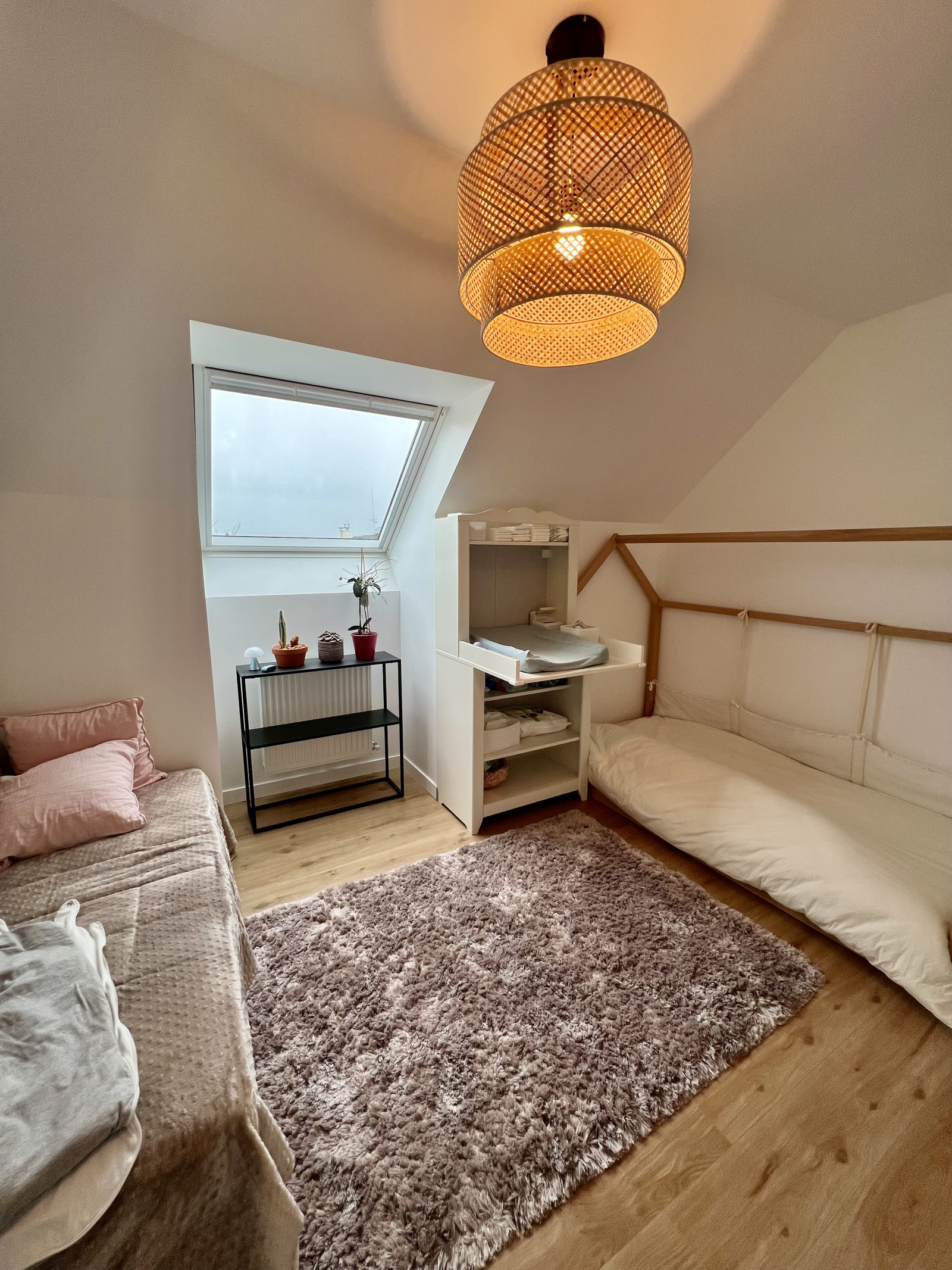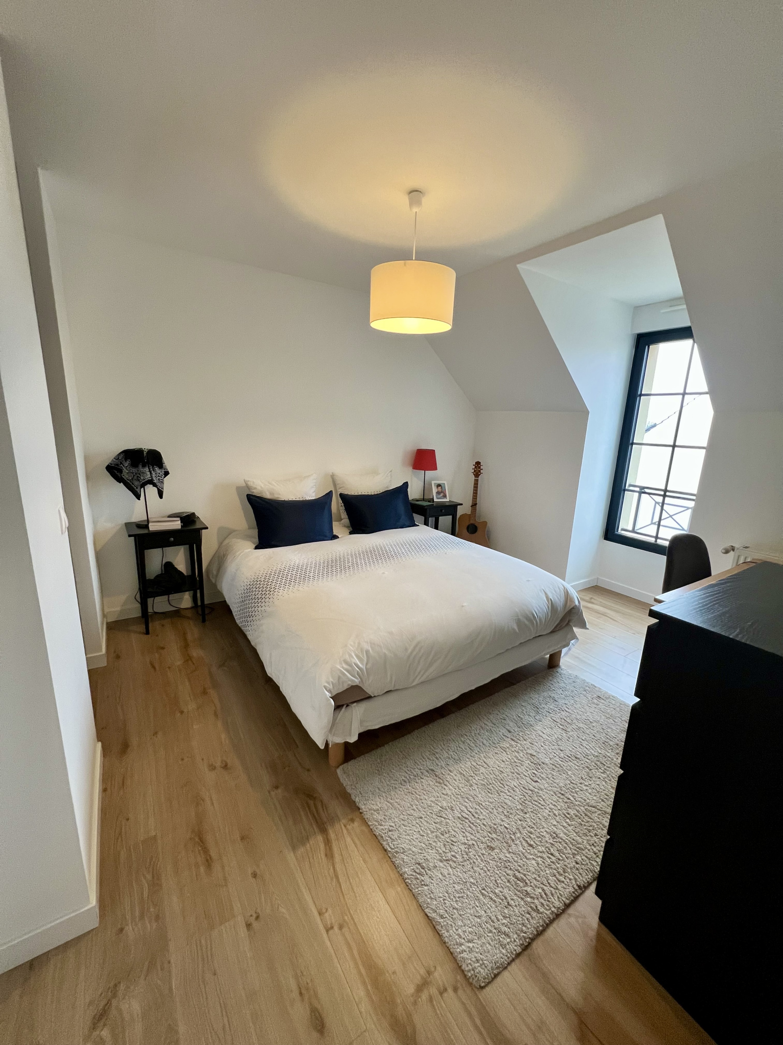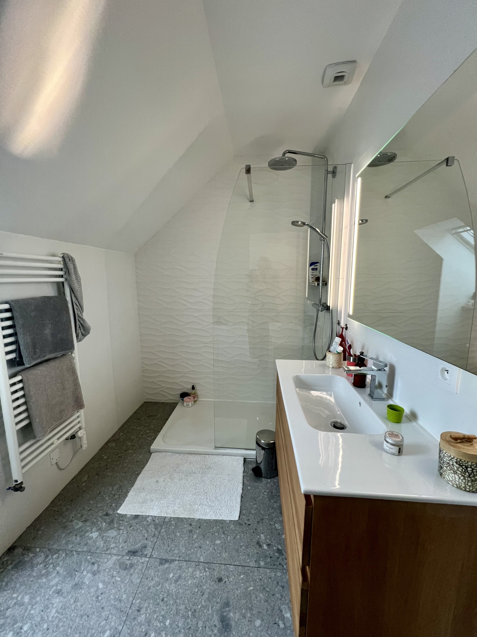 L'étage accueille trois chambres spacieuses, dont une avec dressing, une salle de bain avec douche et baignoire ainsi qu’un WC séparé.